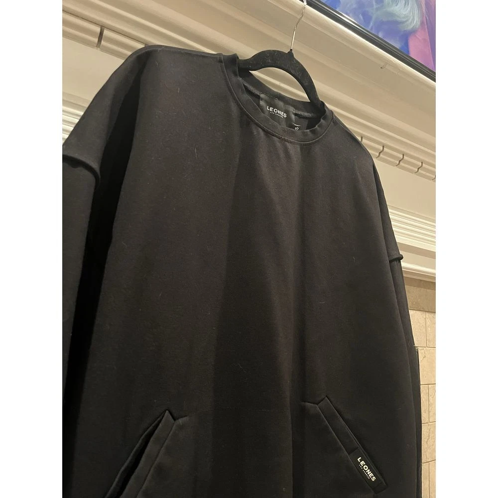 Elevate your casual wardrobe with this sleek black LEONES Los Angeles Mind Set sweatshirt. Features a modern oversized fit with convenient front pockets and branded detailing. Perfect for creating effortlessly cool street-style looks. Layer it over basics for coffee runs, weekend errands, or casual meetups. The minimalist design makes it a versatile piece that pairs easily with everything from joggers to jeans. Style: Pullover Color: Black Onyx Department: Women Type: Sweatshirt Closure: Pullover Features: Oversized, Pockets, Streetwear, Easy Care, Tagless Fabric Type: Blended Fabric Material: Cotton Blend Pattern: Solid Accents: Logo Sleeve Length: Long Sleeve Neckline: Crew Neck Keywords: leones los angeles, black sweatshirt, oversized sweatshirt, streetwear, womens sweatshirt, front pockets, casual wear, athleisure, minimalist, urban style