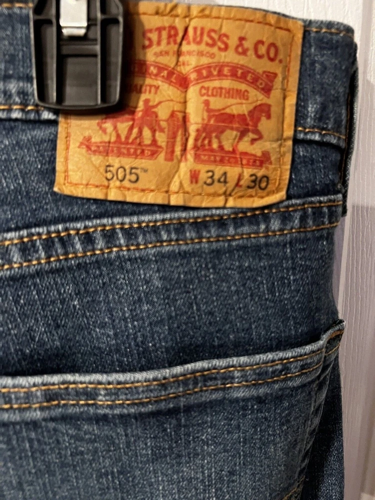 LEVIS 505 JEANS MENS 34x30 REGULAR FIT STRAIGHT LEG BLUE DENIM