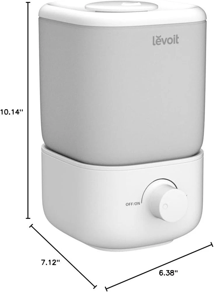 LEVOIT Top Fill Humidifiers for Bedroom, 2.5L Tank Humidifier, White Product Details Brand: LEVOIT Special Feature: Easy Top-Fill without turning over the water tank and spills, Quiet, No Light Disturbance, Easy Cleaning with big opening and base without nooks Color: White Filter Type: Pre Filter Floor Area: 280 Square Feet Operation Mode: Ultrasonic Product Dimensions: 6.38"D x 7.12"W x 10.14"H Item Weight: 2.2 Pounds Room Type: Office, Kids Room, Bedroom, Nursery Model Name: Top Fill Humidifiers for Bedroom, Included Components: 1 × User Manual, 1 × Cleaning Brush, 1 x Pre-Installed Water Filter Sponges, 1 x 2.5L Top-Fill Cool Mist Humidifier Classic 160 Voltage: 120 Volts (AC) Wattage: 17 watts Control Method: Touch Shape: Round UPC: 810123670574 Global Trade Identification Number: 00810123670574 Manufacturer: LEVOIT Item Weight: 2.16 pounds Country of Origin: China Item model number: LUH-A251-WUS Care instructions: Wide Opening, Hand Wash Assembly required: No Number of pieces: 1 Batteries required: No Special Feature: Easy Top-Fill without turning over the water tank and spills, Quiet, No Light Disturbance, Easy Cleaning with big opening and base without nooks Easy Top-Fill without turning over the water tank and spills, Quiet, No Light Disturbance, Easy Cleaning with big opening and base without nooksEasy Top-Fill without turning over the water tank and spills, Quiet, No Light Disturbance, Easy Cleaning with big opening and base without nooks See more CapacityRuntime: 2.5 Liters25 hours MaterialPower Source: BPA-Free MaterialAC : Runs for up to 25 hours on low thanks to its SUPER LARGE capacity of 2.5 liters. The soothing moisture helps quickly relief congestion and dry throat. - : LEVOIT listened to feedback from humidifier customers and upgraded to a easy top-fill design. No need to turn the water tank over or spilling water all over the place. Just ONE-STEP to remove the cover and easily fill the tank. : Easily clean the inside of the tank through its big opening. The detachable designs and simple construction of the base leaves no hard-to-reach corners when cleaning. Maintaining health has never been this easy. : The Classic 160 cool mist humidifier is perfect for sleeping, with noise level as low as 26dB and all lights off. Helps create a peaceful and quiet atmosphere The perfect humidifier for bedrooms and baby nurseries. : Customize the mist output with just one knob and adjust the direction freely with the 360 degree nozzle. Enjoy full control of your air humidifier : Auto shut-off when the water level in base is low and featured with BPA-Free material, for no need to worry about safety issues. Also, you can count on our customer service team in California whenever you need help. : Auto Shut-off function is controlled by the float in the base to stop the machine, there may be some delay in the stopping time, no worries about safety. Besides, there will be a red light when the machine is off due to the low water level. : To ensure the capture and filtration of fine impurities, we provide our valued customers with a - water filter sponge. We hope you relish the soothing and healthful humidification experience delivered by our Classic 160 humidifier. : It is not recommended to add essential oil to this humidifier. Item dimensions: 6.38"D x 7.12"W x 10.14"H Experience uninterrupted tranquility with our brand new Classic 160 Top Fill Humidifier. Indulge in a blissful night's sleep, knowing that it is diligently moisturizing the air for you and your little one! Featured with BPA-Free material and Auto Shut-off when the water level in the base is low, there is no need to worry about safety issues.Features: √ Large Water Tank of 2.5L√ Operation that Lasts Up to 25 Hours When Used at the Lowest Level√ Easy Top-Fill Design √ Easy to Clean with Big Opening and Base without Nooks√ Ultra-Quiet Operation√ 360 Rotating Nozzle√ Auto Shut-Off (Controlled by the float to stop the machine, there will be some delay in the stopping time), and there will be a red light when the machine is off due to the low water level. √ BPA-Free for Safety and Reliability√ Comes with Cleaning Brush Your satisfaction with our products is the team's you find the product damaged or used when you receive it, please don't hesitate to contact us.Specifications:Product Dimensions: 7.1 × 6.4× 10.2 in / 18.1 × 16.2 × 25.8 cmProduct Weight: 2.16 lb / 0.98 kgWhisper-Quiet Operation: 26-28dBEffective Range: 219 ft² / 20 m²Material: BPA free, suitable for babies and adultsFuel Your Classic160 with Levoit Humidifier Replacement Filters Levoit Humidifier Replacement Filters/ Levoit Water Filter SpongeWhy to use:Capture and filter fine impurities and particles to improve humidifying efficiency more to change: Generally lasts 1 month depending on the hardness of water.Where to buy: Please search ### or "LEVOIT 10-Pack Humidifier Replacement Filters" on