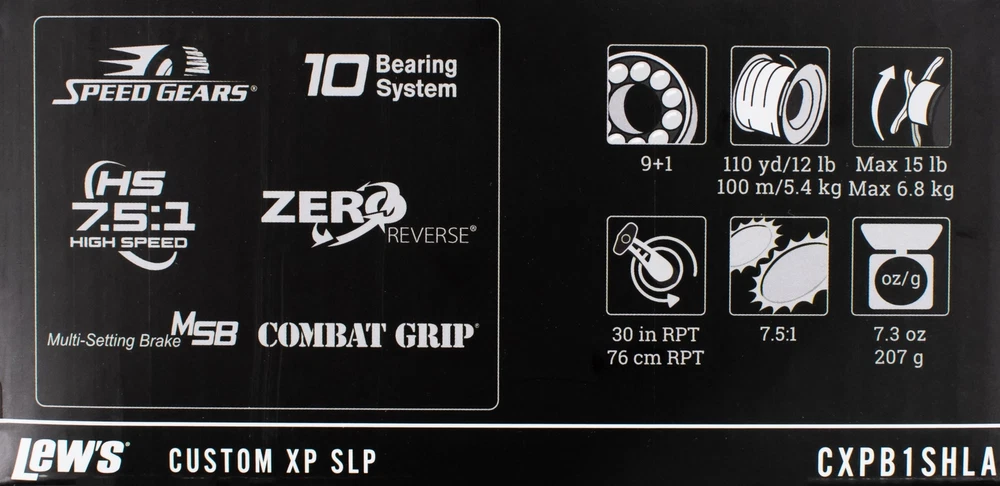 LEW'S CUSTOM XP SPEED SPOOL CXPB1SHLA 7.5:1 LEFT HAND BAITCAST REEL LEW'S CUSTOM XP SPEED SPOOL CXPB1SHLA 7.5:1 LEFT HAND BAITCAST REEL Lew's Custom XP Baitcast Reel offers a great array of performance features performance features. Built on a lightweight, 1-piece graphite frame with easily removable palming side plate, this fun-to-fish reel sports a double-anodized aluminum U-shaped spool for smooth line movement. Also: Multi-Setting Brake system with both magnetic and centrifugal braking; premium 9+1 system with double-shielded, stainless steel ball bearings and Zero-Reverse one-way clutch; audible-click drag star; durable Rulon drag with up to 15 lbs. of drag power; 95mm anodized-aluminum bowed handle with Combat Grip paddles; factory-applied Speed Lube; external lube port for easy spruce-ups. Features 10 Bearing System with stainless steel double shielded ball bearings Zero Reverse one-way clutch bearing One-piece graphite frame Graphite sideplates Double anodized aluminum U-shape 32mm spool Multi-Setting Brake system utilizes externally adjustable magnetic and internally adjustable centrifugal braking High strength solid brass Speed Gears, precision cut on Hamai CNC machines 95mm bowed anodized aluminum handle with Combat Grip knobs Rulon drag system Combat Grip thumb bar Speed Lube for exceptional smoothness and performance in all weather conditions Lew’s exclusive graphite skeletal reel seat PAYMENT TERMS VISA, MASTERCARD, AMEX, OR DISCOVER PAYPAL APPLE PAY GOOGLE PAY PAYMENTS MUST BE MADE IN FULL WITHIN 7 DAYS SHIPPING TERMS ALL PAID ORDERS SHIP WITHIN 1 BUSINESS DAY INSURANCE IS INCLUDED IN SHIPPING PRICE COMBINED ORDER POLICY ORDERS ARE COMBINED NIGHTLY AFTER END OF ALL AUCTIONS. DO NOT PAY FOR INDIVIDUAL ITEMS ENDING ON THE SAME DATE IF YOU WANT THE ORDER COMBINED. ALLOW US TIME TO SEND YOU A COMBINED INVOICE. ORDERS THAT ARE PAID FOR ON DIFFERENT DATES ARE NOT OUR RESPONSIBILITY TO COMBINE. ITEMS MUST BE PAID IN FULL WITHIN 7 DAYS FROM THE END OF 1ST AUCTION. COMBINED ORDER PRICING BAITS - EACH ADDITIONAL AUCTION $1.00 REELS - EACH ADDITIONAL AUCTION $1.00 RODS* - EACH ADDITIONAL AUCTION $1.00 *ALL RODS WILL ONLY COMBINE WITH RODS OPERATING HOURS BUSINESS HOURS ARE MONDAY - THURSDAY 9AM-5PM CENTRAL TIME & FRIDAY 9AM-3PM CENTRAL TIME, EXCLUDING HOLIDAYS EBAY MESSAGES ARE ANSWERED DURING NORMAL BUSINESS HOURS DUE TO THE OVERWHELMING AMOUNT OF ONLINE ORDERS WE ARE EXPERIENCING, LONGER THAN NORMAL RESPONSE TIME TO EMAILS MAY OCCUR. PLEASE BE PATIENT.