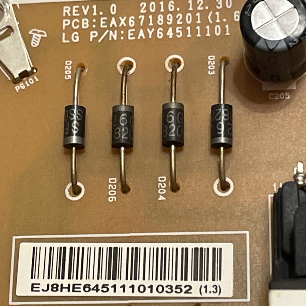 LG Power Supply / LED Driver EAY64511101 LGP49DJ-17U1 is compatible with LG models 49UK6200PUA and 49UM7300PUA. It is designed for LG TVs and is a crucial component for powering and controlling the LED display.