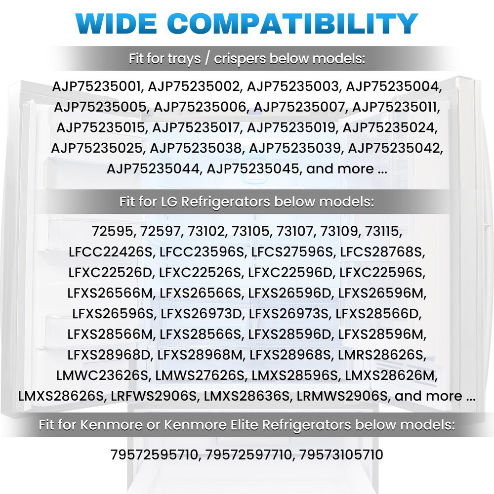 For LG Refrigerator Vegetable Tray Crisper Drawer Wheel Mount MCR620965 Kenmore Welcome!!! We do our best to provide you the most suitable and Affordable products. If you have any problem, please contact us first, we will try our best responding you as soon as possible! Fitment For LG, Kenmore or Kenmore Elite Refrigerator Tray/Crisper For Trays/Crisper: AJP75235001, AJP75235002, AJP75235003, AJP75235004, AJP75235005, AJP75235006, AJP75235007, AJP75235011, AJP75235015, AJP75235017, AJP75235019, AJP75235024, AJP75235025, AJP75235038, AJP75235039, AJP75235042, AJP75235044, AJP75235045, and more ... For LG Refrigerators: 72595, 72597, 73102, 73105, 73107, 73109, 73115, LFCC22426S, LFCC23596S, LFCS27596S, LFCS28768S, LFXC22526D, LFXC22526S, LFXC22596D, LFXC22596S, LFXS26566M, LFXS26566S, LFXS26596D, LFXS26596M, LFXS26596S, LFXS26973D, LFXS26973S, LFXS28566D, LFXS28566M, LFXS28566S, LFXS28596D, LFXS28596M, LFXS28968D, LFXS28968M, LFXS28968S, LMRS28626S, LMWC23626S, LMWS27626S, LMXS28596S, LMXS28626M, LMXS28626S, LRFWS2906S, LMXS28636S, LRMWS2906S, and more ... For Kenmore or Kenmore Elite Refrigerators: 79572595710, 79572597710, 79573105710 Features This listing is for Refrigerator Vegetable Tray Crisper Drawer Wheel Mount/Bracket. For LG, Kenmore, Kenmore Elite Part # MCR620965 One Set includes 2 pieces (left and right) Specification Condition: Brand New & Premium Quality Type: Crisper Wheel Mount Bracket Color: White Material: ABS Plastic Quantity: 2PCS Package Included 2 X Refrigerator Vegetable Tray Crisper Drawer Wheel Mount/Bracket == We can accept PayPal / Discover Card / Visa / Master Card and so on == 1.Shipping from the US Warehouse by USPS or UPS . Within 1 business days after payment cleared. 2.Delivery time depends on destination,usually arrive 1-5 days after delivery. 3.We have Two US warehouses, the addresses of the warehouses are in Hebron Kentucky and Walnut California. The actual delivery warehouse will based on our inventory and the distance to you. 4.Please offer us your telephone number or your order will be delayed since the courier will need it for the delivery. If you have problems with the following issue please Contact us immediately. 1.You do not satisfaction the item quality. 2.Item do not fit your motorcycle perfect. 3.Item can not reach your expectation. 4.The item arriver be broken. 5.You do not receive the item. 6.Parcel Lost. 7.Receive the wrong item. Please do not worry !!! We are honest ebay dealers ,we will endeavour to resolve all of your problems until you are satisfied. We have poweful partner factory to sure our price can be the best !!Service to every rider over the World is our target !!!! We have professional team to care about every piece of fairing sale from us. Best sevice is the key to make we stand out. Fitment For LG, Kenmore or Kenmore Elite Refrigerator Tray/Crisper For Trays/Crisper: AJP75235001, AJP75235002, AJP75235003, AJP75235004, AJP75235005, AJP75235006, AJP75235007, AJP75235011, AJP75235015, AJP75235017, AJP75235019, AJP75235024, AJP75235025, AJP75235038, AJP75235039, AJP75235042, AJP75235044, AJP75235045, and more ... For LG Refrigerators: 72595, 72597, 73102, 73105, 73107, 73109, 73115, LFCC22426S, LFCC23596S, LFCS27596S, LFCS28768S, LFXC22526D, LFXC22526S, LFXC22596D, LFXC22596S, LFXS26566M, LFXS26566S, LFXS26596D, LFXS26596M, LFXS26596S, LFXS26973D, LFXS26973S, LFXS28566D, LFXS28566M, LFXS28566S, LFXS28596D, LFXS28596M, LFXS28968D, LFXS28968M, LFXS28968S, LMRS28626S, LMWC23626S, LMWS27626S, LMXS28596S, LMXS28626M, LMXS28626S, LRFWS2906S, LMXS28636S, LRMWS2906S, and more ... For Kenmore or Kenmore Elite Refrigerators: 79572595710, 79572597710, 79573105710 Features This listing is for Refrigerator Vegetable Tray Crisper Drawer Wheel Mount/Bracket. For LG, Kenmore, Kenmore Elite Part # MCR620965 One Set includes 2 pieces (left and right) Specification Condition: Brand New & Premium Quality Type: Crisper Wheel Mount Bracket Color: White Material: ABS Plastic Quantity: 2PCS Package Included 2 X Refrigerator Vegetable Tray Crisper Drawer Wheel Mount/Bracket PAYMENT == We can accept PayPal / Discover Card / Visa / Master Card and so on == SHIPPING 1.Shipping from the US Warehouse by USPS or UPS . Within 1 business days after payment cleared. 2.Delivery time depends on destination,usually arrive 1-5 days after delivery. 3.We have Two US warehouses, the addresses of the warehouses are in Hebron Kentucky and Walnut California. The actual delivery warehouse will based on our inventory and the distance to you. 4.Please offer us your telephone number or your order will be delayed since the courier will need it for the delivery. Terms of Sale If you have problems with the following issue please Contact us immediately. 1.You do not satisfaction the item quality. 2.Item do not fit your motorcycle perfect. 3.Item can not reach your expectation. 4.The item arriver be broken. 5.You do not receive the item. 6.Parcel Lost. 7.Receive the wrong item. Please do not worry !!! We are honest ebay dealers ,we will endeavour to resolve all of your problems until you are satisfied. ABOUT US We have poweful partner factory to sure our price can be the best !!Service to every rider over the World is our target !!!! We have professional team to care about every piece of fairing sale from us. Best sevice is the key to make we stand out.