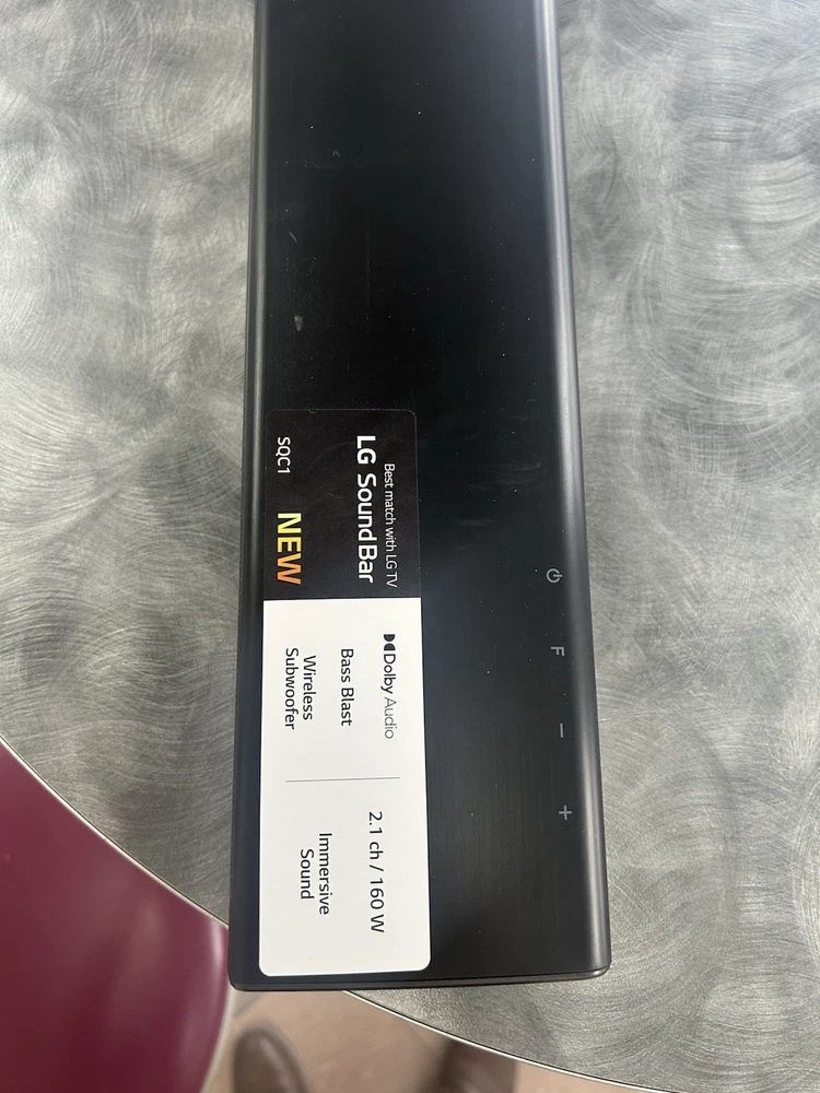 LG SQC1 2.1 Ch 160W Soundbar Bluetooth w/ Wireless Subwoofer Black. Solid Shape!