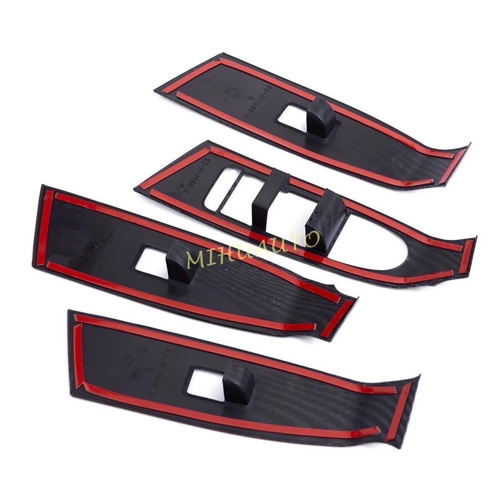 TRACKING NUMBER IS OFFERED Fitment 2023-2024 Mazda CX-50 (VA) * ONLY FIT left hand drive. NOT FIT right hand drive Description Material ABS plastic with carbon fiber style spray paint (NOT genuine carbon fiber) Package Included 4 pcs/set (door window switch panel covers) Installation Stick on with pre-attached double sided adhesive tape. Heat the tapes via lighter before installing