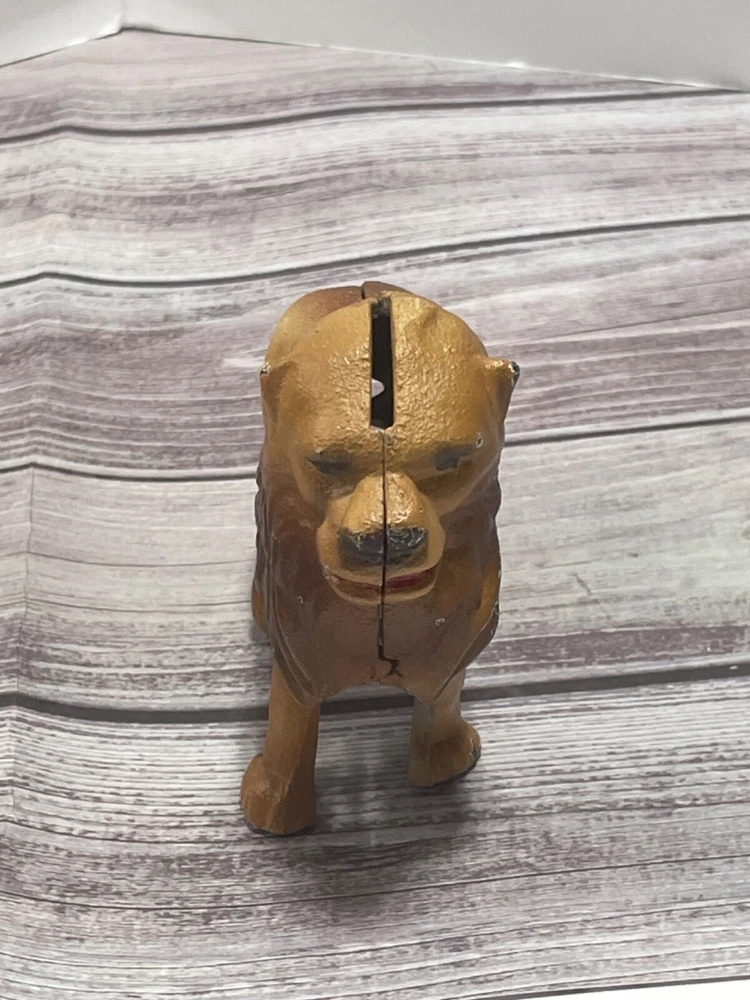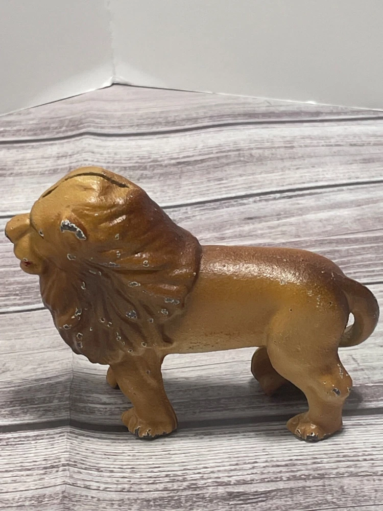 LION CAST IRON COIN BANK VINTAGE