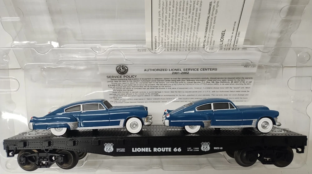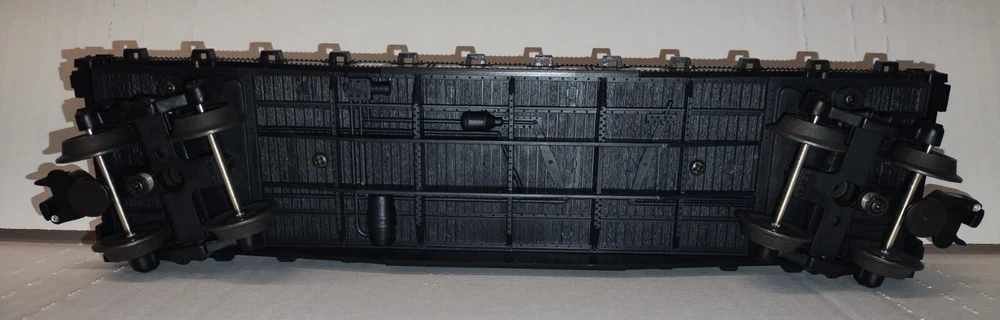 New unused train car; Box has light wear & some small stains-Will ship Quickly from NY in padded oversize box.All of our offers are Guaranteed 100%....................This Lionel flat car is a great addition to any model train collection. It features a sleek black design and is made of durable plastic material. The car is pre-built and ready to go, making it perfect for those who want to add some realism to their layout. The car is part of the Lionel brand, known for its high-quality model train products. It is designed for use on O gauge tracks and has a vintage look that will complement any train enthusiast's collection. This flat car is perfect for transporting small items or adding to a freight car collection. Overall, this Lionel flat car is a great buy for anyone looking to add some realism to their model train layout.