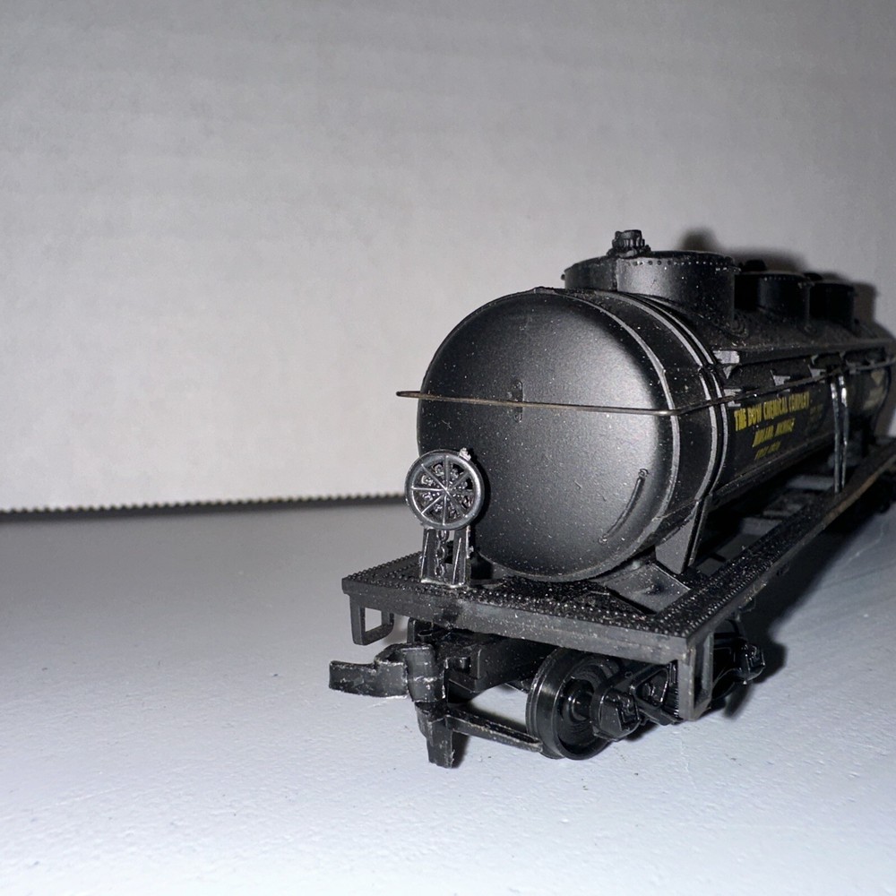 LIONEL HO SCALE DOW CHEMICAL 3 DOME TANK CAR #48416 (5-8416) Top of smokestack missing stack - see pic