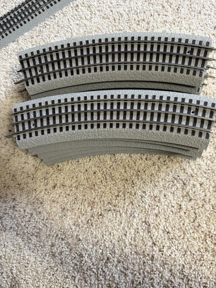 REAL SLIGHTLY USED 0-48 Curves Enhance your model railroad setup with the Lionel O Gauge Fast Track Full Circle O48 Curves pack. Ideal for creating smooth transitions and expanding your rail network, these 12 pieces are expertly crafted to complement your existing O scale layout. Constructed with a blend of durable steel and high-quality plastic, they promise longevity and resilience against wear. The track pieces feature a sleek gray color that integrates seamlessly into a variety of scenic environments. Designed for AC power operation, they are compatible with the Lionel O scale railroads and trains. Whether you're a seasoned modeler or just starting, these curves provide the reliability and flexibility needed for an engaging railway experience. SOLD AS IS NO RETURNS!!!!!!