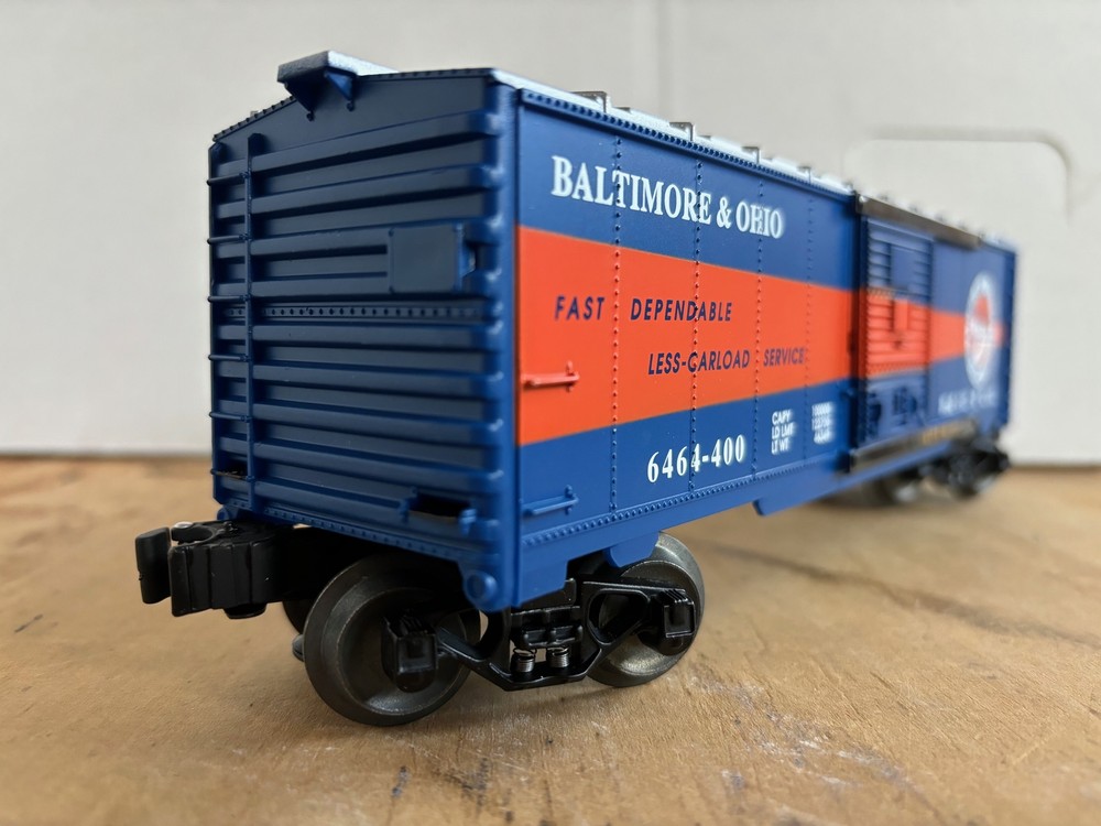 LIONEL 6-19294 O-GAUGE BALTIMORE & OHIO B&O 6464-400 TIMESAVER BOX CAR RTR OVP D LIONEL 6-19294 O-GAUGE BALTIMORE & OHIO B&O 6464-400 TIMESAVER BOX CAR RTR OVP DARK BLUE & ORANGE METAL WHEELS AND AXLES OPERATING KNUCKLE COUPLERS FREE scheduling, supersized images and templates. Get Vendio Sales Manager. Make your listings stand out with FREE Vendio custom templates! FREE scheduling, supersized images and templates. Get Vendio Sales Manager. Over 100,000,000 served. Get FREE counters from Vendio today!