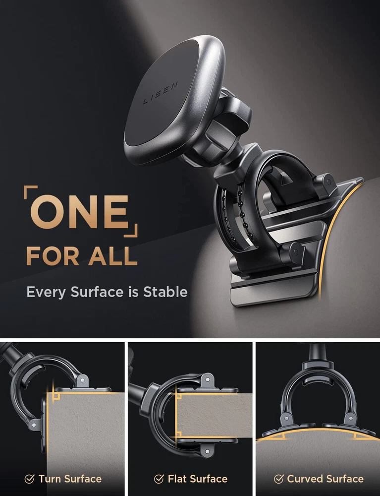 LISEN Magnetic Phone Holder for Car [6 Strong Magnets] Car Phone Holder Mount, R Features: 👍Upgraded 2022 magnetic head:This Magnetic Car Phone Holder Mount uses 6X NdFeB military magnet, which can generate a closed magnetic field to prevent magnetic leakage and interference with mobile phone signals. In addition, the larger and thicker magnetic head (50% thicker than the normal one) brings strong suction to keep your mobile phone stable even on rough roads 👍Replaceable vent base to meet all you need:This phone holder for car vent is compatible with 99% Horizontal & Vertical vents, which solves the common problems of poor compatibility and cradle easily falling off on the market.You can enjoy two different experiences when buying our Magnetic Car Mount to avoid waste caused by repeated purchases 👍Compatible with Horizontal & Vertical Vents: The Steel hook clip of this cell phone mount for car is 50% longer than the ordinary one. It’s compatible with most Horizontal & Vertical vents, which solves the common problems of poor compatibility and cradle easy falling off on the market. We upgrade the iPhone car holder to meet all the needs of the car vent. Note: Round vents may not fit 👍Upgraded double adhesive base fits more tightly:Magnet phone holder car upgraded double 3M VHB adhesive is used to increase the contact area. It can 100% adhere to any Curved& Uneven surface and is more stable than single-sided adhesive.Atmosphere of 122°F and -42°F, this car phone holder could not fall off with heavy things weighing 30kg for more than 72 hours ❤️️Doing Responsibly and Sustainably❤️:As a responsible company, Lisen operates sustainably, to high environmental and social standards. We continue to embed sustainability ever deeper in the way we do business – in our own operations and beyond, together with our suppliers. Lisen cell phone holder for car also comes with 12 months warranty. Our expert team always stands by your side Features: 👍Upgraded 2022 magnetic head:This Magnetic Car Phone Holder Mount uses 6X NdFeB military magnet, which can generate a closed magnetic field to prevent magnetic leakage and interference with mobile phone signals. In addition, the larger and thicker magnetic head (50% thicker than the normal one) brings strong suction to keep your mobile phone stable even on rough roads 👍Replaceable vent base to meet all you need:This phone holder for car vent is compatible with 99% Horizontal & Vertical vents, which solves the common problems of poor compatibility and cradle easily falling off on the market.You can enjoy two different experiences when buying our Magnetic Car Mount to avoid waste causéd by repeated purchases 👍Compatible with Horizontal & Vertical Vents: The Steel hook clip of this cell phone mount for car is 50% longer than the ordinary one. It’s compatible with most Horizontal & Vertical vents, which solves the common problems of poor compatibility and cradle easy falling off on the market. We upgrade the iPhone car holder to meet all the needs of the car vent. Note: Round vents may not fit 👍Upgraded double adhesive base fits more tightly:Magnet phone holder car upgraded double 3M VHB adhesive is uséd to increase the contact area. It can 100% adhere to any Curved& Uneven surface and is more stable than single-sided adhesive.Atmosphere of 122°F and -42°F, this car phone holder could not fall off with heavy things weighing 30kg for more than 72 hours ❤️️Doing Responsibly and Sustainably❤️:As a responsible company, Lisen operates sustainably, to high environmental and social standards. We continue to embed sustainability ever deeper in the way we do business – in our own operations and beyond, together with our suppliers. Lisen cell phone holder for car also comes with 12 months warranty. Our expert team always stands by your side eBay integration by