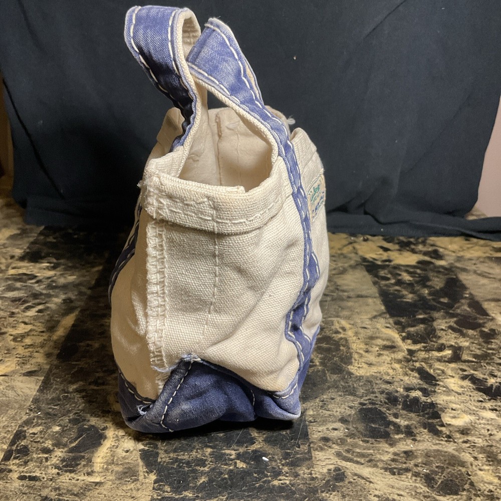 This L.L. Bean tote bag is a vintage 80s gem for men who love unique accessories. The green cotton material gives it a casual yet stylish look, perfect for a day out on the town. The bag features a boat and tote design, making it a great option for carrying your essentials. The brand is well-known for its quality and durability, making this bag a reliable choice for any occasion. The mini size makes it easy to carry, and the 80s theme adds a touch of nostalgia to your outfit. Made in the United States, this bag is a rare find that is sure to turn heads. Whether you're running errands or going on a trip, this L.L. Bean tote bag is a must-have for any fashion-forward man.