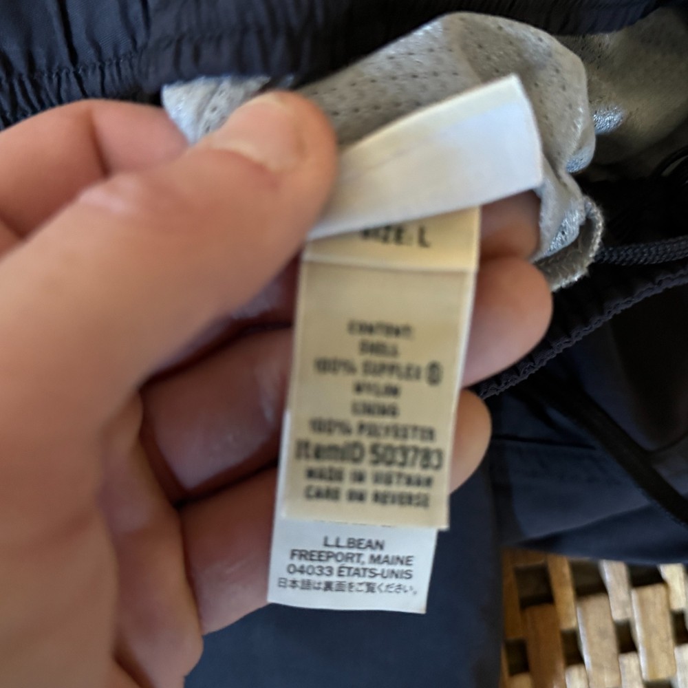 These L.L. Bean navy blue swim trunks in men's size large are perfect for a day at the beach. Made of durable nylon material with a comfortable polyester lining, these swim trunks feature a solid blue color and a classic trunk style bottom. With convenient pockets and machine washable care instructions, these swim trunks are ideal for recreational activities in the water. Whether you're lounging by the pool or enjoying some fun in the sun, these swim trunks offer both style and functionality.