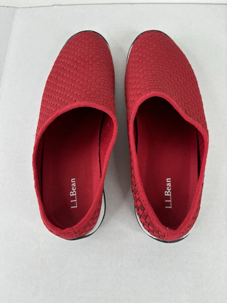 LL Bean Shoes Womens 8.5 Red Waffle Knit Mesh Slide On Clog Comfort
