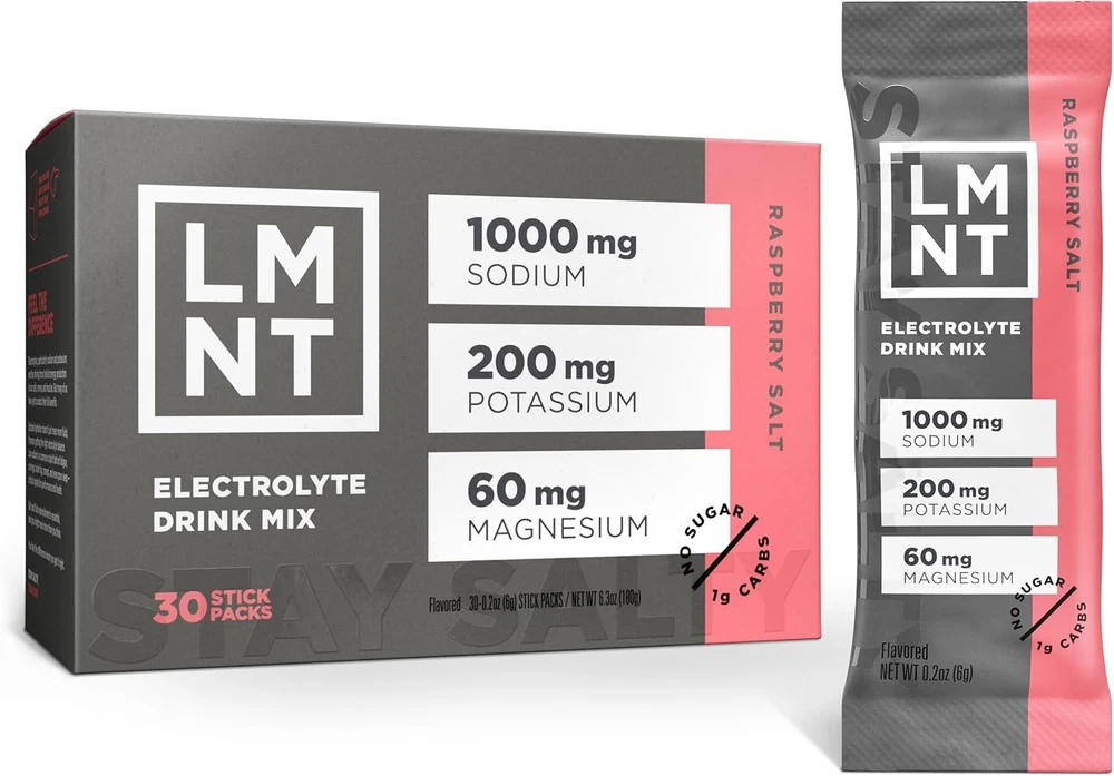THE BEST ELECTROLYTE DRINK MIX EVER: LMNT is a tasty electrolyte drink mix with everything you need and nothing you don't — perfect for training, low-carb or keto diets, fasting, and those leading active lifestyles. MORE SALT, NOT LESS: A growing body of research reveals that optimal health outcomes occur at sodium levels 2-3x government recommendations. That’s why we say, More Salt, Not Less. OUR FORMULATION: Each stick pack contains 1000 mg sodium, 200 mg potassium, 60 mg magnesium — a truly meaningful serving of electrolytes in a science-backed ratio. FEEL THE DIFFERENCE: All-day energy starts with optimal hydration. More energy. No brain fog or cramps. You feel the difference when you get it right. HOW TO #STAYSALTY: Mix one stick pack with 16–32 ounces of water, sparkling water, tea, smoothie, or more. Product description The video showcases the product in use. The video guides you through product setup. The video compares multiple products. The video shows the product being unpacked. LMNT Electrolye Drink Replacement Merchant Video