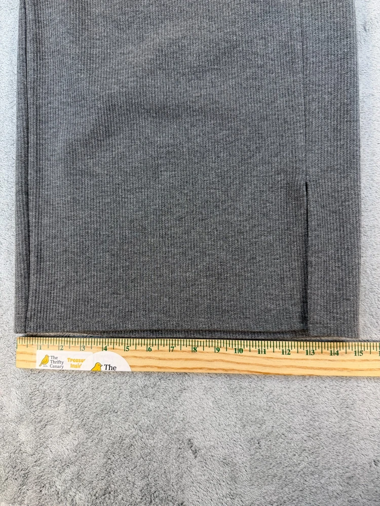 ⭐ LOFT Ribbed Knit Pencil Skirt Size: Women’s XS Color: Gray Material: 73% Polyester / 25% Rayon / 2% Spandex Soft ribbed knit skirt with comfortable stretch and a flattering straight silhouette. Features a clean minimalist design with a side slit for ease of movement. Perfect for work, layering, or casual elevated outfits. Please see included photos for measurements and full details. 💛 Thanks for supporting our small family business!