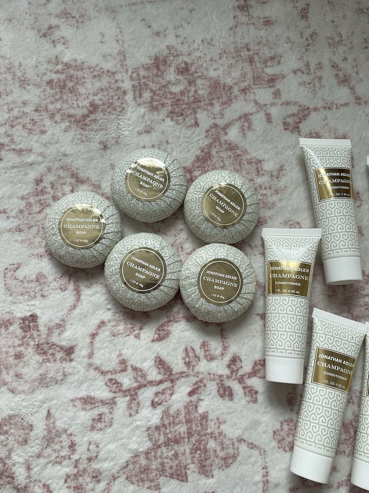 Brand new LOT of 5 Jonathan Adler Champagne soaps and 10 conditioners. Brand new condition.