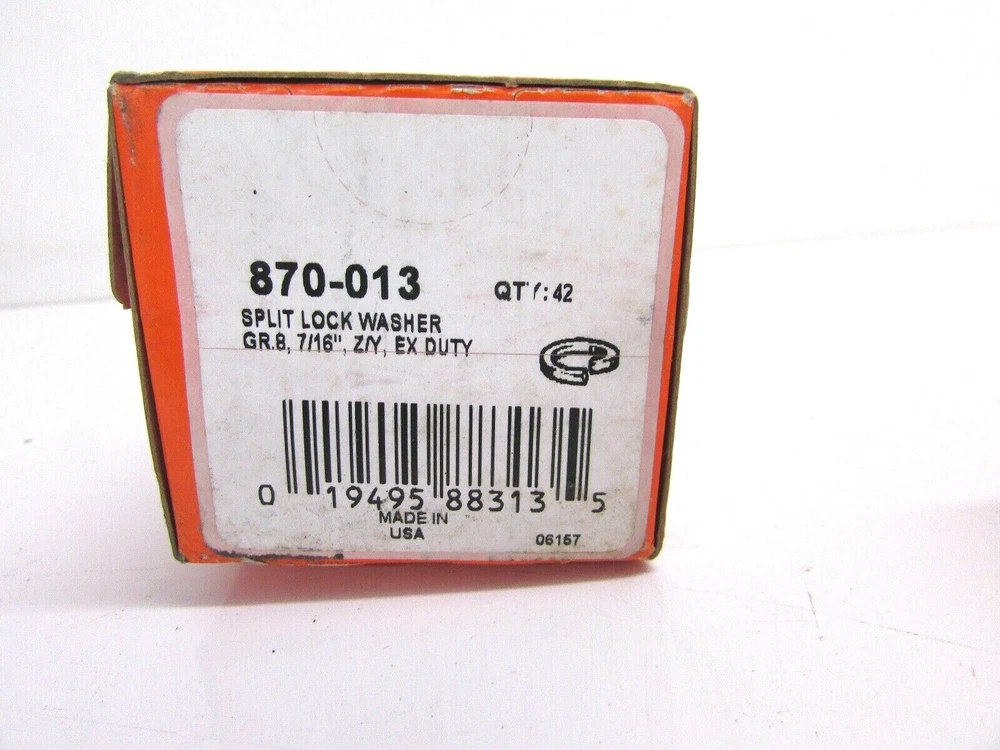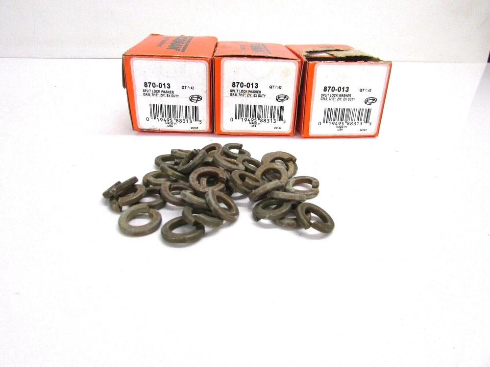 THIS IS A "NEW", OLD STOCK ITEM LOT of 120 DORMAN SPLIT LOCK WASHER GR 8, 7/16", Z/Y, EX DUTY 3 BOXES OF 42 = 126 PCS TOTAL SLIGHT STORAGE DISCOLORATION NEW OLD STOCK! GREY END SHELF 19