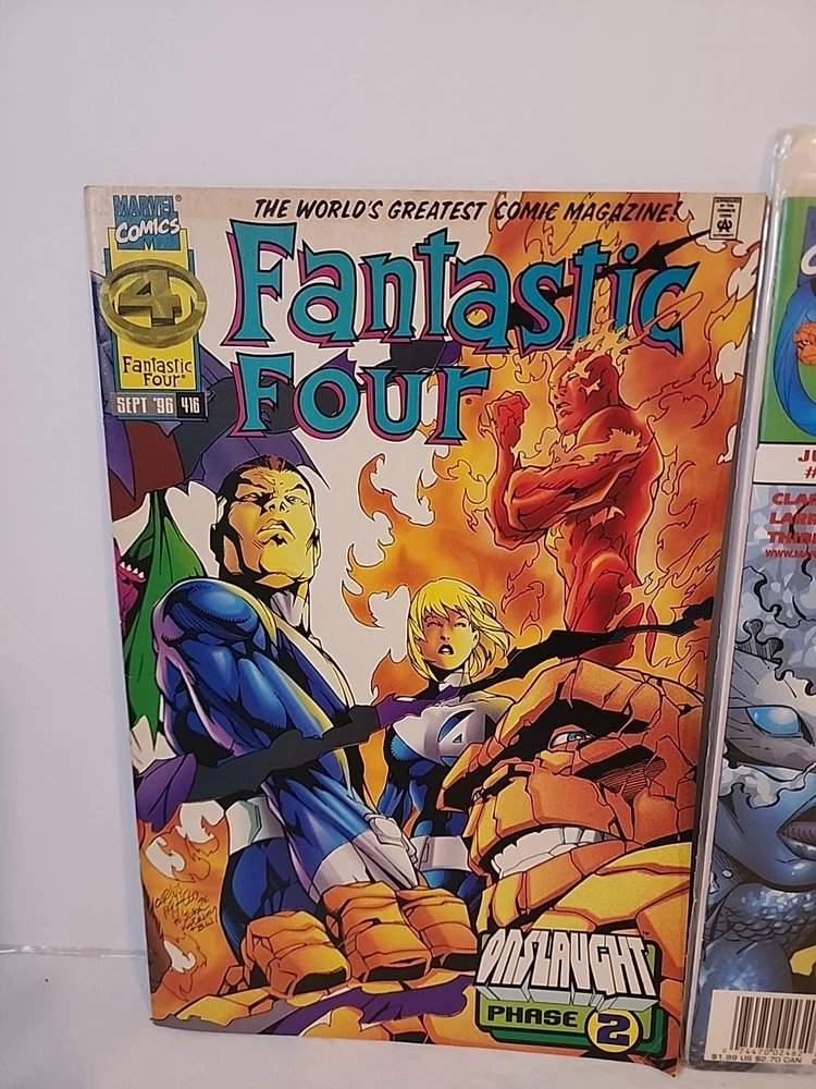 This lot includes three fantastic issues of the Fantastic Four comic book series. The comics feature the adventures of the superhero team, including Human Torch, The Thing, Invisible Woman, Namor, Red Ghost, Silver Surfer, Spider-Man, Mister Fantastic, and Iron Fist. The comics are written by Alan Davis, illustrated by Scott Lobdell, and colored by Salvador Larroca, among other talented artists and writers. The comics are in English, published by Marvel Comics, and are from the Modern Age era (1992-Now). They are boarded and perfect for collectors and fans of the action, superheroes, and adventure genres. The lot does not include signed copies, but it is a great addition to any collection of US Comics, especially for fans of the Fantastic Four team.
