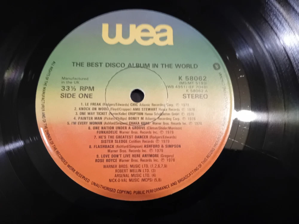 LOT OF 4 DISCO LP'S + 12" SINGLE ODYSSEY NATIVE NEW YORKER ALL PICTURED AND LISTED 1. 20 DISCO DANCIN HITS PICKWICK PLE 7010 1974 STEREO COVER VG LABELS EXCELLENT VINYL EXCELLENT 2. BEST DISCO ALBUM IN THE WORLD ORIGINAL INNER SLEEVE WEA K58062 STEREO 1979 COVER VG LABELS EXCELLENT VINYL EXCELLENT 2. 40 TRACKS DISCO MAGIC DOUBLE LP GATEFOLD SLEEVE PICKWICK PLD 8015 1978 COVER VG LABELS EXCELLENT VINYL EXCELLENT 4. DON'T WALK BOOGIE EMI EMTV 13 STEREO 1978 COVER VG LABELS EXCELLENT VINYL EXCELLENT 5. PLAYTIME WITH WALLY WHYTON NURSERY RHYMES SONGS DANCES TONGUE TWISTERS HALLMARK/PICKWICK SHM 818 STEREO 1973 5. 12" SINLE ODYSSEY NATIVE NEW YORKER/EVER LOVIN SAM RCA DDC002 STEREO 1977 COVER VG LABELS EXCELLENT VINYL EXCELLENT P&P UK IS £5 (FOR UP TO 7 LP'S UK) EUROPE £20 TRACKED REST OF WORLD £35 TRACKED OR ECONOMY £18
