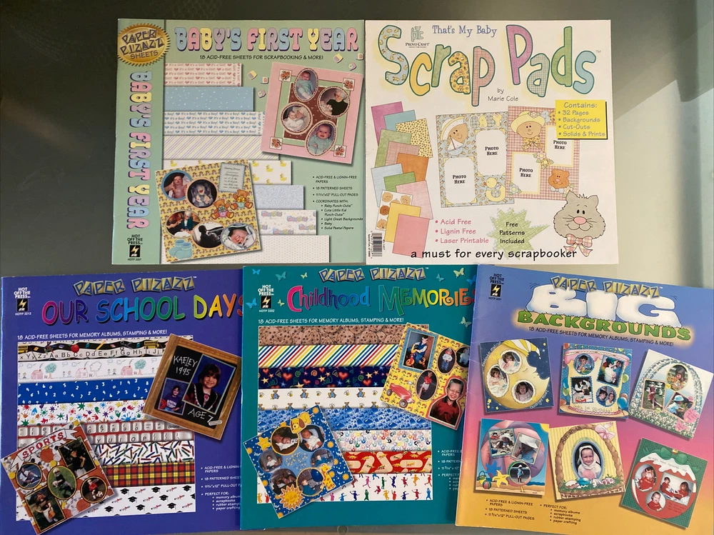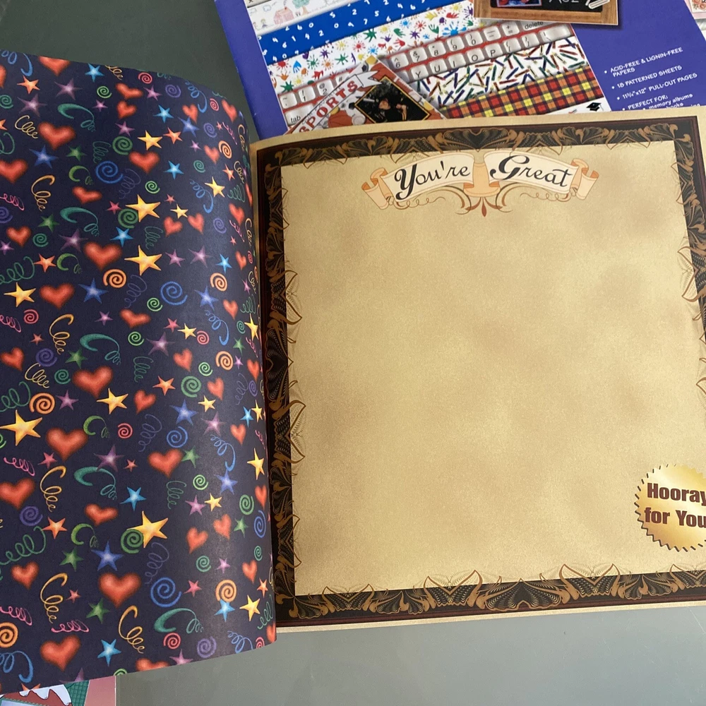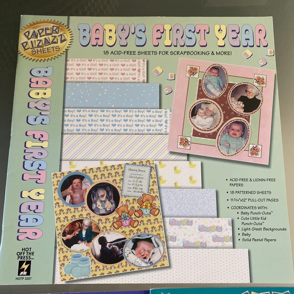 This LOT OF 5 Paper Pizazz scrapbooking papers is a must-have for any parent or teacher who wants to create beautiful and personalized scrapbooks for their children. These acid-free sheets are perfect for preserving memories and will not degrade over time. The multicolor designs are suitable for baby, child, and school-themed scrapbooks. Whether you want to create a memory book for your child's first year, a school project, or a unique gift for a loved one, these sheets are perfect for the job. The Paper Pizazz brand is known for its high-quality crafting paper, and these sheets are no exception. Made in the United States, they are a reliable choice for any crafter. 4 Books are NEW, Unused however Baby’s First Year has a few pages missing.