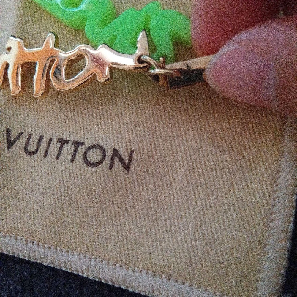 LOUIS VUITTON Keychain Strap Gold Green