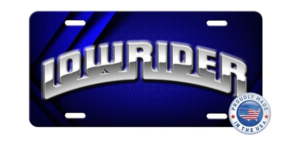 This license plate/ sign is painted on a sturdy .32 gauge aluminum blank . There is no actual emblem or chrome used, nor is it actual brushed aluminum or bare steel. What you see is simulated to look like what you see in the listing photo. Any questions please ask. Thank you. 0 LOWRIDER LOW RIDER on Blue Simulated Carbon Fiber Aluminum License Plate Tag Please read the entire listing description BEFORE purchasing: These are NOT embossed or textured or raised in any way, nor is it an actual emblem. They are smooth, glossy and maintenance free. Features: Our High-Quality License Plates are sturdy and constructed of super durable 32-gauge aluminum with a baked-on clear gloss finish designed to hold up to the elements so your license plate will last for the long haul. Universal Fit for all cars and trucks. Approximate dimensions are 12"X6". Plate is secured via fasteners on top and/or bottom with the standard screws/bolts that hold a license plate to your car (Not Included). Makes a great gift: Ideal gift for family or friend that has everything. SATISFACTION GUARANTEED: Our friendly, knowledgeable staff is here to help, and customer satisfaction is our top priority! If you have any issues with your order or you’re not happy for any reason, just let us know and we’ll be there to help! PROUDLY MADE IN THE USA: Buy with confidence from an American owned and operated company! NuggetWorld Products are produced in our state-of-the-art facility in Chandler, Arizona, proudly made in the U.S.A.! Thank you for considering my items! Any questions please feel free to message me. I will respond within minutes These are our own original designs created on premium, sturdy .32 gauge license plates. BEWARE of unscrupulous "sellers" who steal our designs and sell them on very thin, flimsy plates using cheap paints/ink that will fade not long after purchase. Thank you for considering our items, Jamie.