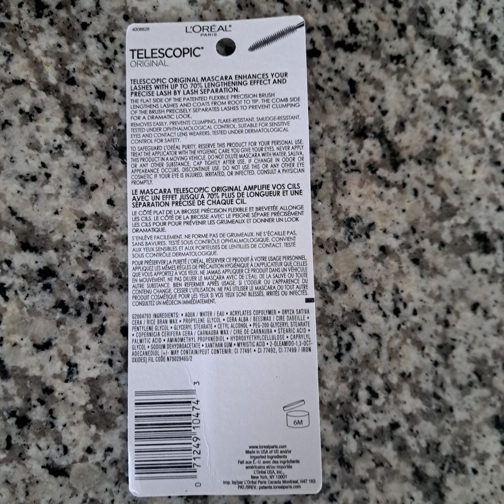 Shade:Blackest BlackScent:UnscentedCountry of Origin:United StatesVolume:0.27 fl ozEffect:LengtheningFeatures:WashableSize:StandardFormulation:LiquidProduct Line:L’Oréal Paris VoluminousPeriod After Opening (PAO):6MType:MascaraBrand:L'Oréal