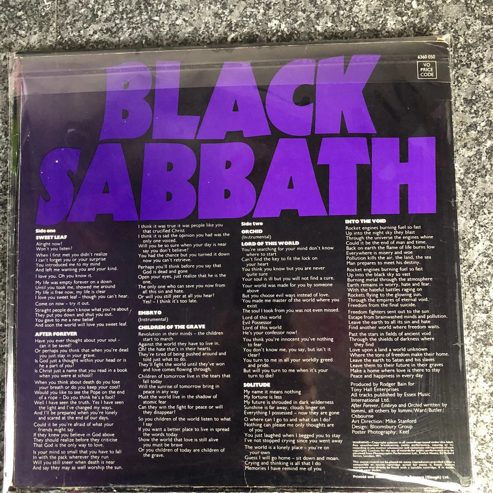 Tracklist Show Credits A1 Sweet Leaf A2 After Forever A3 Embryo A4 Children Of The Grave B1 Orchid B2 Lord Of This World B3 Solitude B4 Into The Void Sleeve and inner excellent minus condition light shelf wear and flattening of the box sleeve. Item sent in clear resealable sleeve with new poly lined inner added. Replica poster is included. Labels are clean excellent condition. Vinyl has a lovely sheen few very light hairlines surface marks excellent condition superb audio a nice copy. Pro cleaned. We combine postage on all multiple orders to reduce shipping costs to our customers outside of the UK.