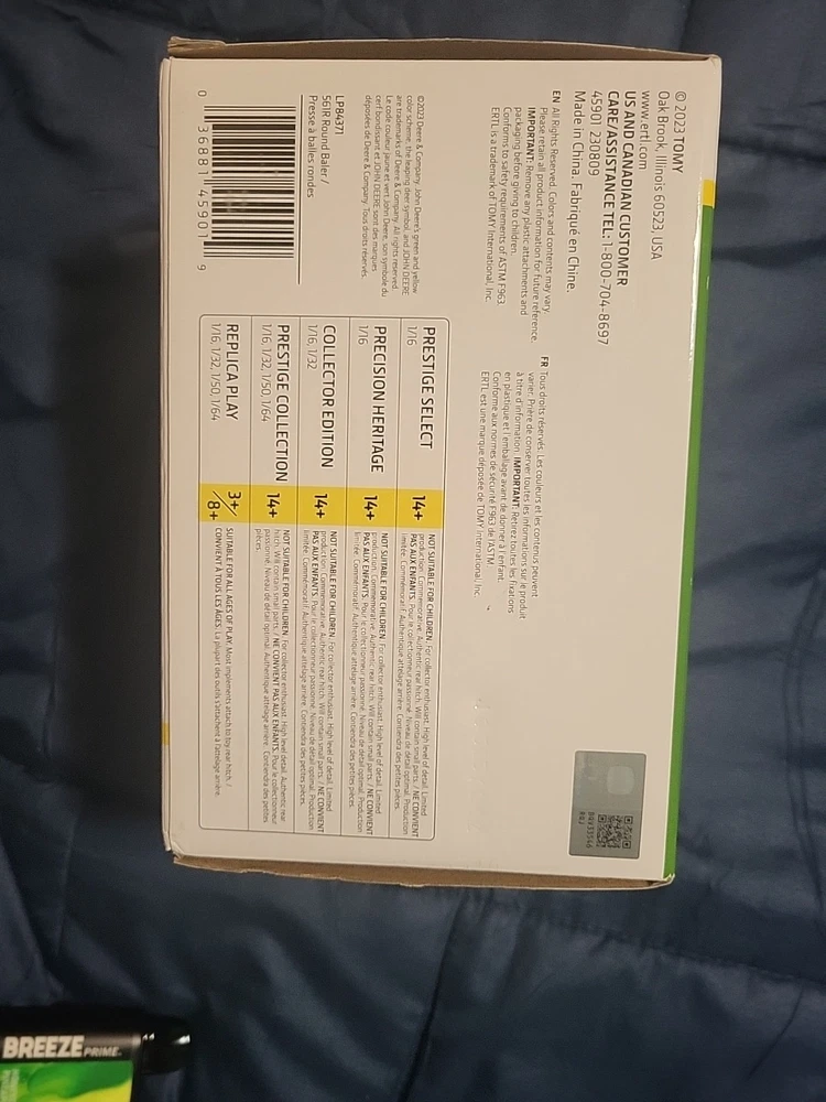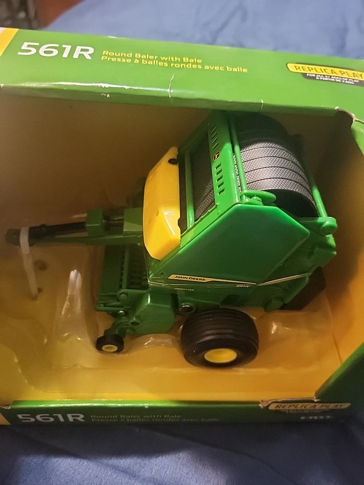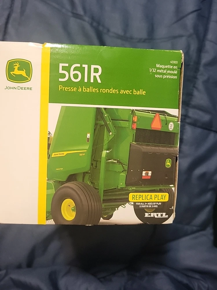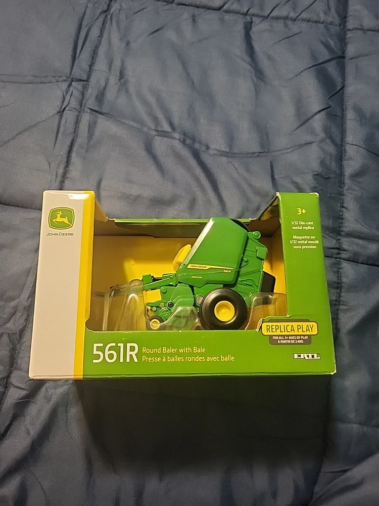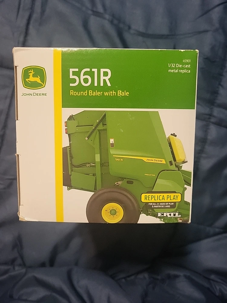 This LP84371 John Deere ERTL 1/32 561R Round Baler 45901 is a must-have for any farming enthusiast. The die-cast material and 1:32 scale make it a perfect addition to any collection. The green color and opening bale chamber add to its realistic features. The baler comes unopened in its original box and is recommended for ages 3 and up. It is a great gift for boys and girls of all ages who love farming and John Deere. The California Prop 65 warning applies, and the model number is 45901. Add this contemporary manufactured toy to your collection today!