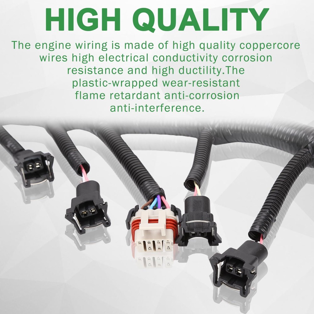 LS Swap Standalone Harness with 4L60E,Ls Engine Wiring Harness Compatible with 1997-2006 GM DBC LS1 4.8L 5.3L 6.0L Vortec Engines, Drive by Cable 【Wide Compatibility】Ls engine wiring harness compatible with Chevy, GMC, Cadillac, and Hummer trucks equipped with LS1 engines (4.8L, 5.3L, 6.0L) and 4L60E transmission from 1997 to 2006, ensuring broad applicability. 【Comprehensive Wiring Features】Our ls stand alone wiring harnessIncludes essential connectors like "Tachometer", "Speedometer", "Park Neutral", "Malfunction Indicator", "DLC port", and others in the engine, facilitating comprehensive functionality. 【Easy Installation】Plug-and-play design with color-coded connectors for straightforward installation. Ls swap stand alone harness includes detailed instruction manuals for guidance, although professional installation is recommended. 【Premium Quality】ls swap harness crafted from high-quality copper core wires, providing high electrical conductivity, corrosion resistance, and durability. Features wear-resistant, flame-retardant, and anti-interference properties for longevity. 【Complete Package】Includes 1 x LS1 Engine Wire Harness, 2 x Mounting Screws, and comprehensive instruction manuals. Our customer service ensures prompt responses within 24 hours and offers worry-free returns for peace of mind. Material Plastic, Copper Item dimensions L x W x H 11.77 x 5.71 x 13.23 inches Item Weight 6.9 Hundredths Pounds Cable Type automotive wiring harness