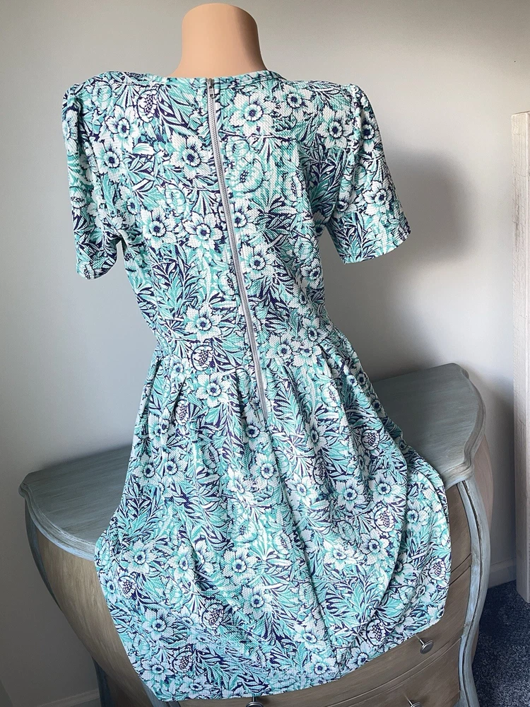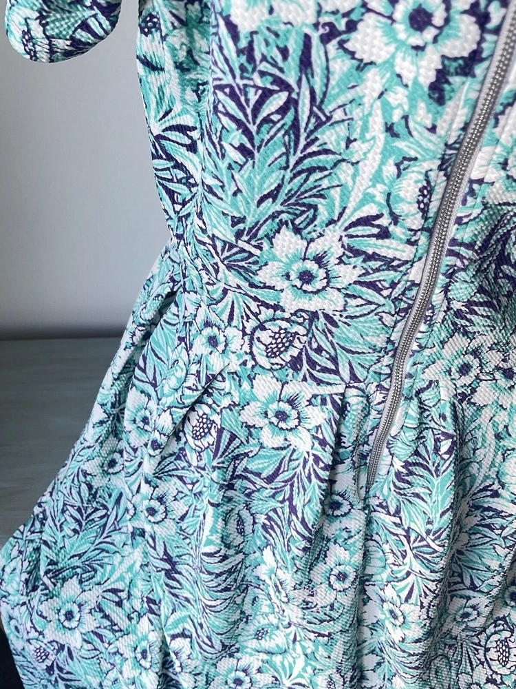 Animals, College, Colorful, Flower, Nature, Outdoor, Preppy, Tattoo, Unicorn, Birds, Native, Crepe 70s Style Fabric, Textured Stretch, It Has Pockets!, Rare HTF, Simply Comfortable, Boho bohemian gypsy gypsie hippie hippy hippey fairy, Tea Dress Crepe, Free returns combined shipping, Lightning fast shipping ship shipment same or next day, White teal purple, Basic simple minimalist modest practical comfortable functional, Church Office Career Casual Business