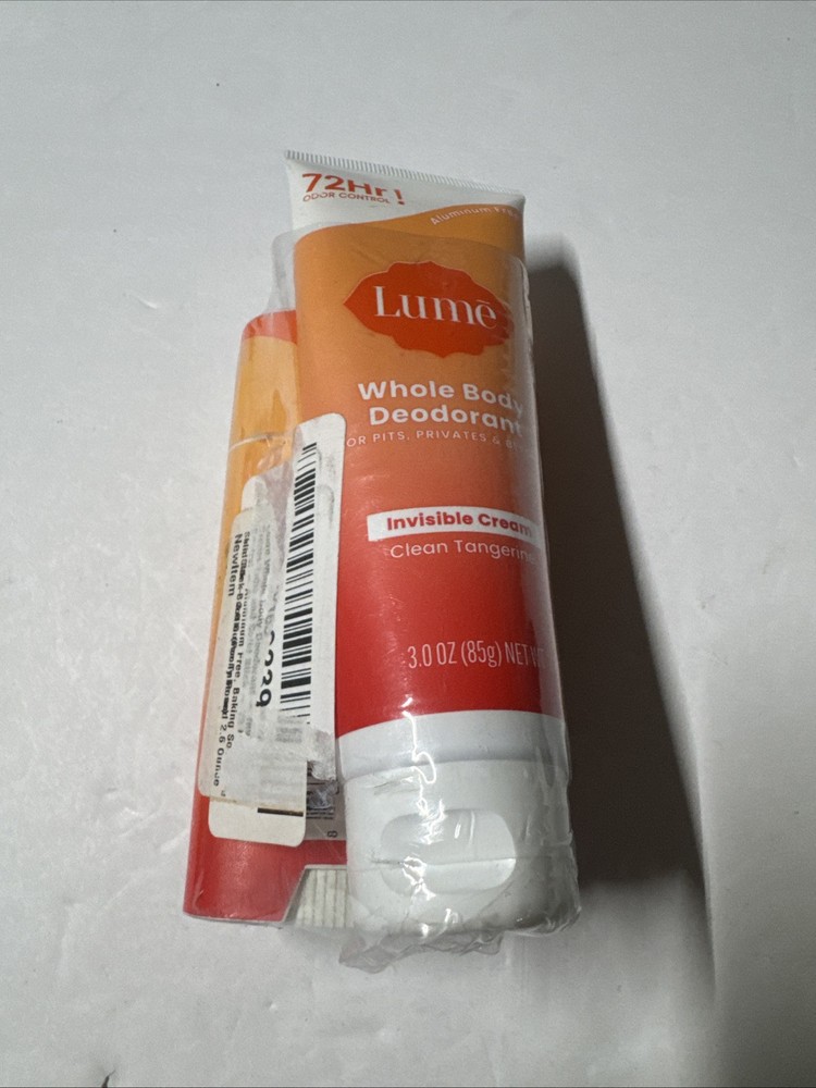 LUME CLEAN TANGERINE Whole Body Deodorant Cream 3oz & Smooth Solid Stick New(2PK.