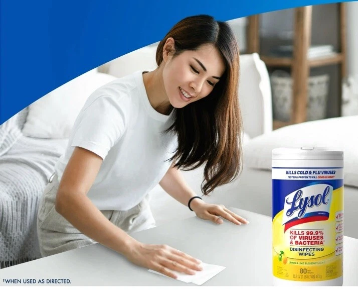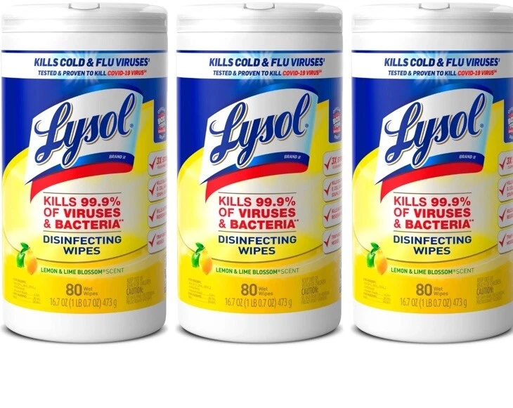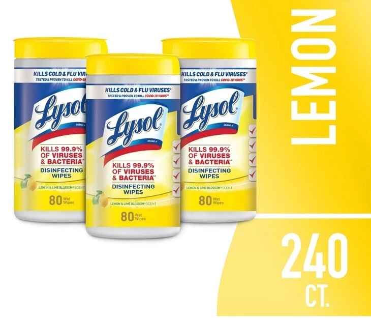 The Lysol Disinfecting Wipes in Lemon & Lime Blossom scent come in a pack of 3 with 80 wipes in each pack, totaling 240 wipes. These wipes are EPA registered and designed as a multi-surface disinfectant and antibacterial solution. The wipes are in a convenient wipe form and are stored in a bag container. Made in China, these Lysol wipes are ideal for use in various settings to effectively clean and disinfect surfaces.