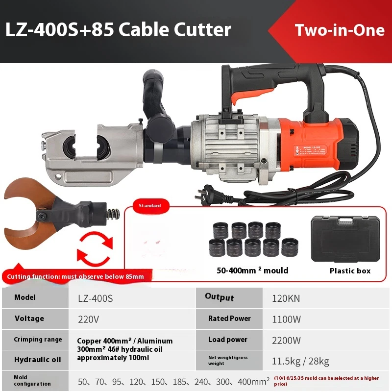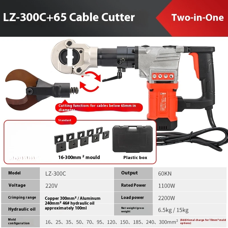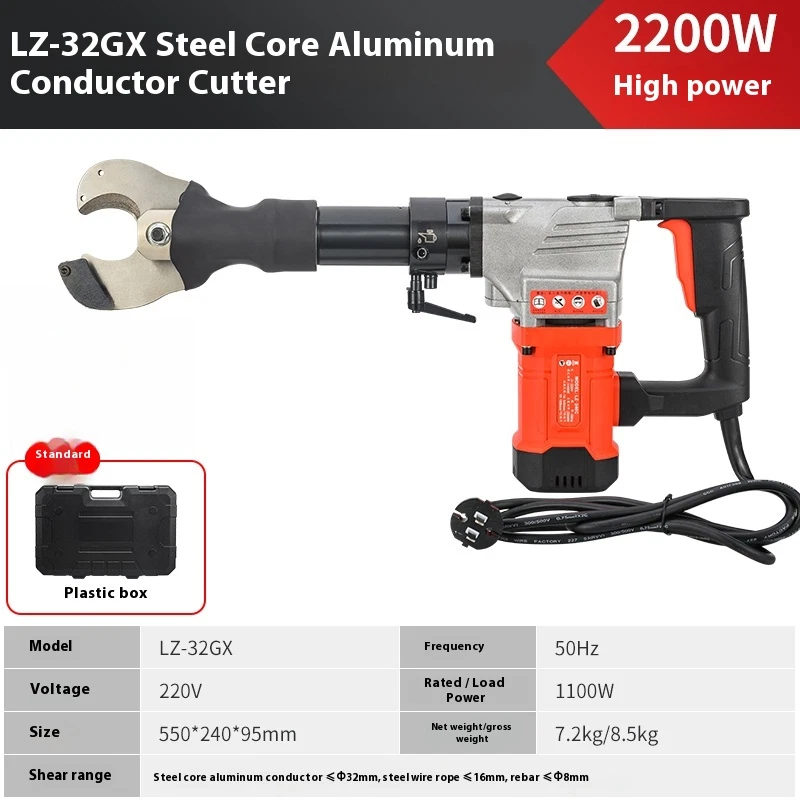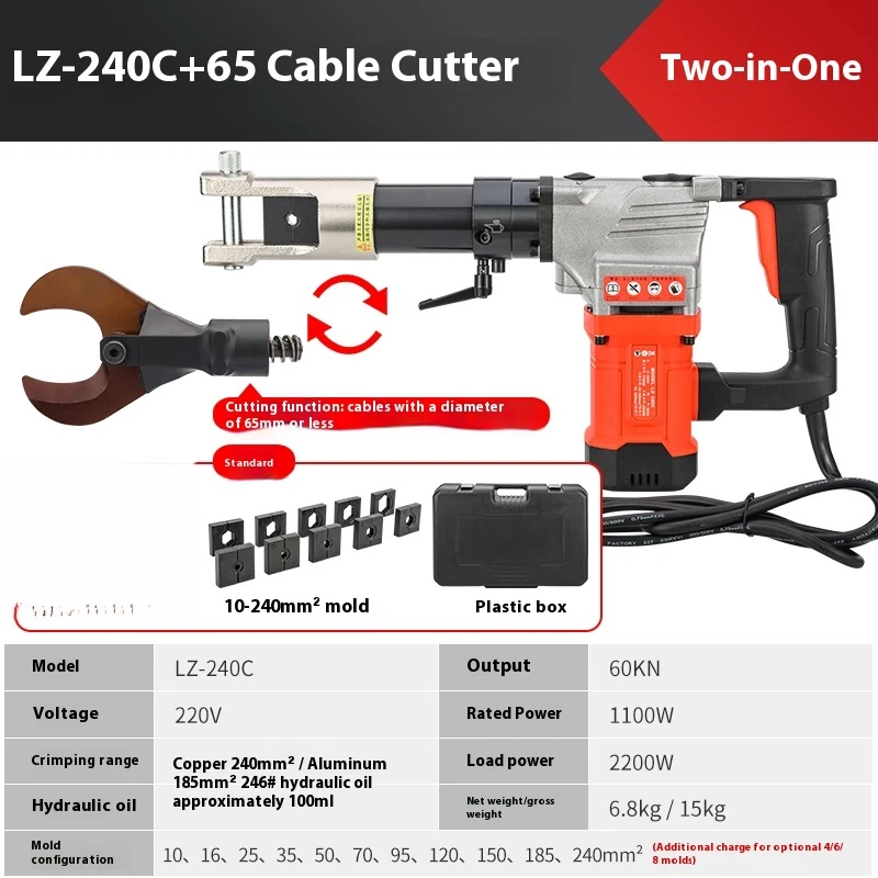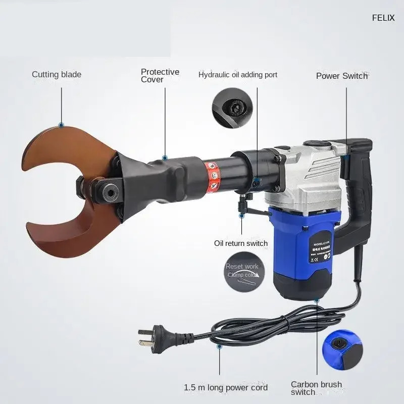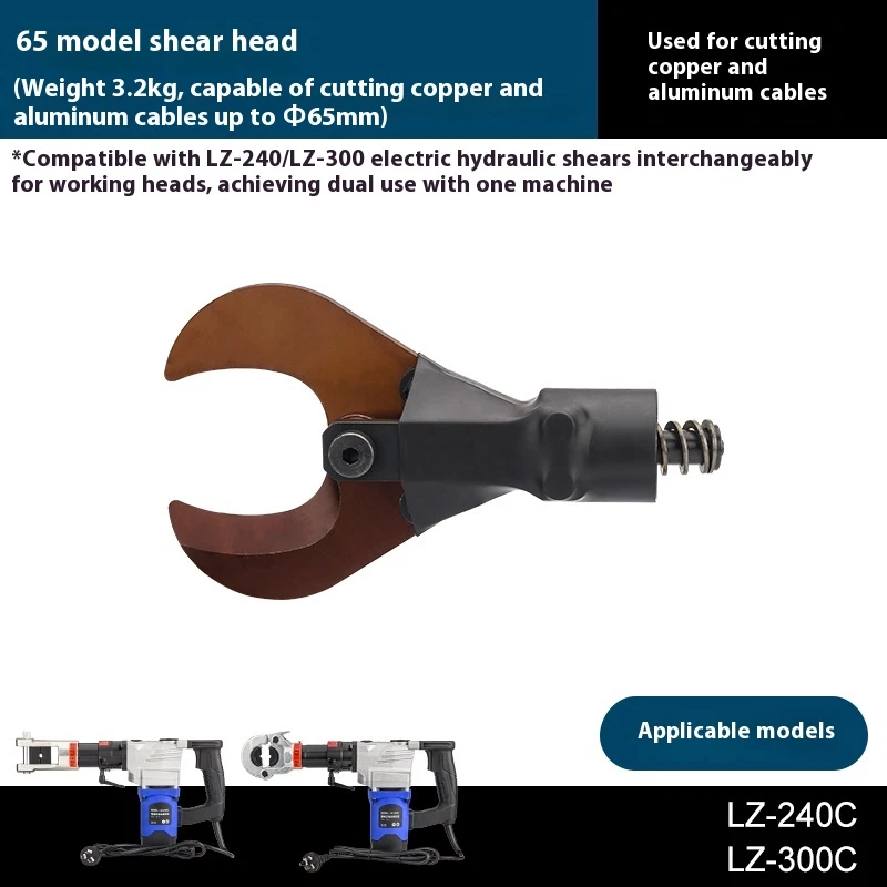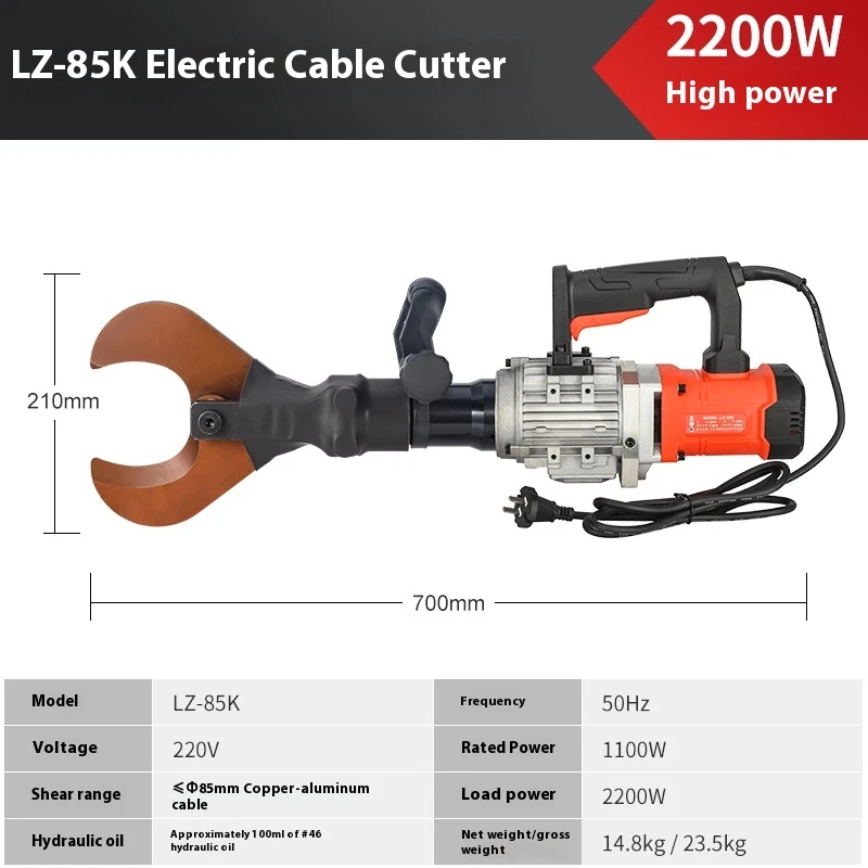 2200W LZ-65 Electric hydraulic cable cutter plug- in hydraulic cable cutter multifunctional steel strand cutting for pliers Product name: High power cable cutter Model LZ-65K Frequency 50Hz Voltage 220v Rated power 1100w Cutting range ��65mm copper and aluminum cables Load power 2200w Hydraulic oil 46# hydraulic oil about 100ml