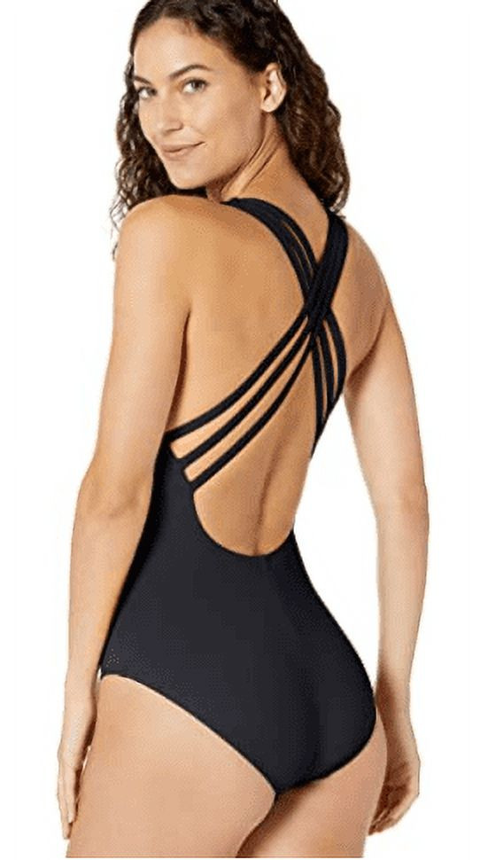 About this item LA BLANCA Size: 8 Material: Nylon Blend Color: Black Solid Surplice One Piece Cross-Back Lined