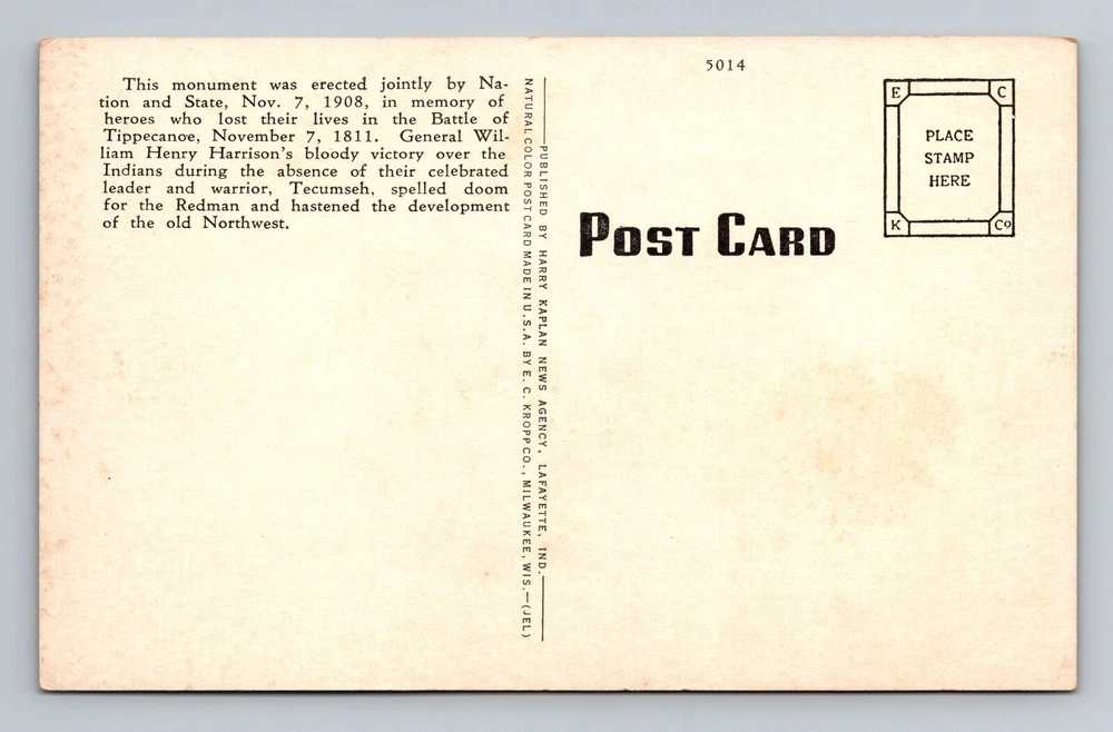 La Fayette IN-Indiana, Soldiers Monument Battle Ground Antique Vintage Postcard