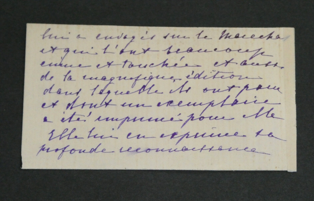 Kostenlose eBay-Eintragsvorlage, entworfen von dewiso.com Die Marschallin Foch - -karte Visitenkarten Autogrammkarte Rechts Armand Godoy,„ Die Beschreibung dieses Artikels erfolgte durch automatische Übersetzung. Bei anstehenden Fragen, wenden Sie sich bitte an uns. Marschall Foch. Autogramm-Dankeschön-Visitenkarte Autogramm-Visitenkarte von La Maréchale Foch, mit 8 mm Trauerrand. „Vielen Dank an Herrn Armand Godoy für die wunderschönen Verse, die er ihr über den Marschall schickte und die sie sehr berührten und berührten, und auch für die prächtige Ausgabe, in der sie erschienen und von der ein Exemplar für sie gedruckt wurde.“ Sie drückt ihm ihre tiefe Dankbarkeit aus.“ Abmessungen: 9,6 x 5,6 cm Zustand : Weitere Informationen finden Sie auf den Fotos. Anzahl Seiten: 2 Seite S Armand Godoy Armand Godoy, 1880 in Havanna geboren und 1964 in Lausanne gestorben, ist ein symbolistischer Dichter kubanischer Herkunft. Zunächst im kubanischen Tabakhandel tätig, änderte er im Alter von vierzig Jahren seine Sprache, um ein französischer Dichter „in der Sprache Baudelaires“ zu werden, und ließ sich 1919 in Paris nieder. Wikipedia Ferdinand Foch Ferdinand Foch, geboren am 2. Oktober 1851 in Tarbes in den Hautes-Pyrénées und gestorben am 20. mars 1929 in Paris, ist General, Marschall von Frankreich und Mitglied der Französischen Akademie. Im Ersten Weltkrieg 1918 zeichnete er sich als Generalissimus der alliierten Streitkräfte an der Westfront aus. Wikipedia Kontaktieren Sie uns Autogrammbriefe, alte Papiere, alte Bücher, Fotografien, Gravuren, Briefmarken... Wir bewerten und/oder kaufen Ihre Briefe, Briefsammlungen und alten Bücher in ganz Frankreich. Zahlung Es werden Zahlungen per eBay, PayPal, Überweisung oder Scheck akzeptiert. Senden Sorgfältige Lieferung in stabiler, wasserdichter Verpackung innerhalb von drei Tagen. Berücksichtigen Sie zusätzlich die üblichen Verzögerungen bei der Post. Zurück Zufriedenheit garantiert oder Ihr Geld zurück. Wenn Sie nicht vollständig zufrieden sind, erfolgt die Rücksendung auf Kosten des Verkäufers für Europa. Auf Kosten des Käufers für den Rest der Welt. Autogramm-Visitenkarte von La Maréchale Foch, mit 8 mm Trauerrand.„Vielen Dank an Herrn Armand Godoy für die wunderschönen Verse, die er ihr über den Marschall schickte und die sie sehr berührten und berührten, und auch für die prächtige Ausgabe, in der sie erschienen und von der ein Exemplar für sie gedruckt wurde.“ Sie drückt ihm ihre tiefe Dankbarkeit aus.“ Abmessungen: 9,6 x 5,6 cm Zustand : Weitere Informationen finden Sie auf den Fotos. Anzahl Seiten: 2 SeiteS