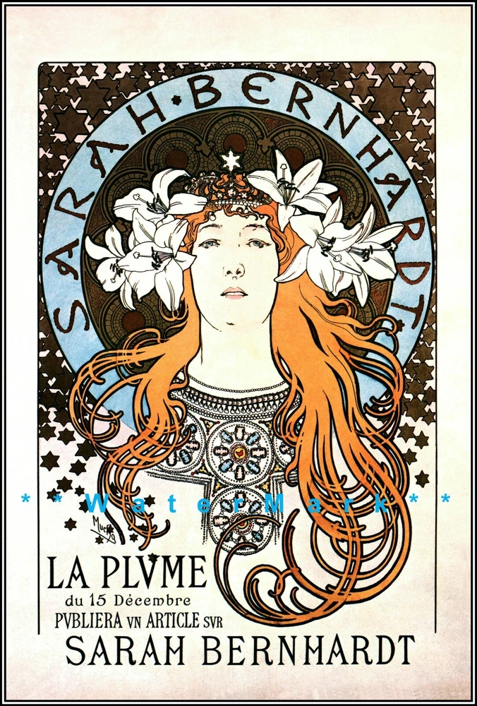La Plume 1896 Sarah Bernhardt Theater Stage Play Advertisement Alphonse Mucha Art Sarah Bernhardt is portrayed as Mélissande in Edmond Rostand’s drama La Princesse Lointaine. The main character decorates her tiara (designed by Mucha) with lilies in the third act. Vintage Poster Print Retro Style Restored Art We offer Free US Postage or Reduced Postage for Canada & Worldwide. ***These are not framed or stretched or mounted NOTE:**Delivery dates shown are only "Suggested" Order Early To Avoid Post Delay Dramas **Read Please: The print looks best with a nice mat (passe - partout or passepartout ) and frame. These prints are the exact proportion as the original and will not be stretched to fit the paper or canvas...this would cause a distorted print The image will be the exact aspect ratio as per the original poster, so there might be more white on the top and bottom, or side to side. Options available..use the drop-down menu * Watermark will not be on your image. *Cloth Canvas an artist canvas used also in museums and art galleries *Photo Gloss Paper is a high-quality Professional Photo paper *Matte Photo Paper is a great solution if you do not want a Gloss, this paper is great with colors *Luster Photo Paper this photo paper is neither glossy or matt. Glossy paper has a smooth texture, luster paper is slightly textured. This option is a good choice for something in between Metallic, Photo Gloss and Matte *Metallic Pearlescent Photo Paper is a very high-quality paper with a Pearlescent sheen, a glossy finish, and unique metallic appearance, these prints have extra visual interest and depth. This paper uses a combination of film laminate layers that produce striking, dimensional, lasting images on an ultra-bright background. The effect is sometimes described as "chrome on paper." This is NOT a metal plaque, it is a photo paper This poster print will be shipped in a sturdy container. We will ship usually within 24 business hours of payment, except for weekends or US Holidays If there is a question, please do contact me All is done to send you the best quality poster image. Don't forget to check out the Sales. There is a great Buy 3 Get 1 Free Offer!! Shipped Worldwide! There are a variety of reasons why the images on your monitors don't match each other. The simplest is that each monitor is different; even monitors with exactly the same model won't have colors that match up perfectly