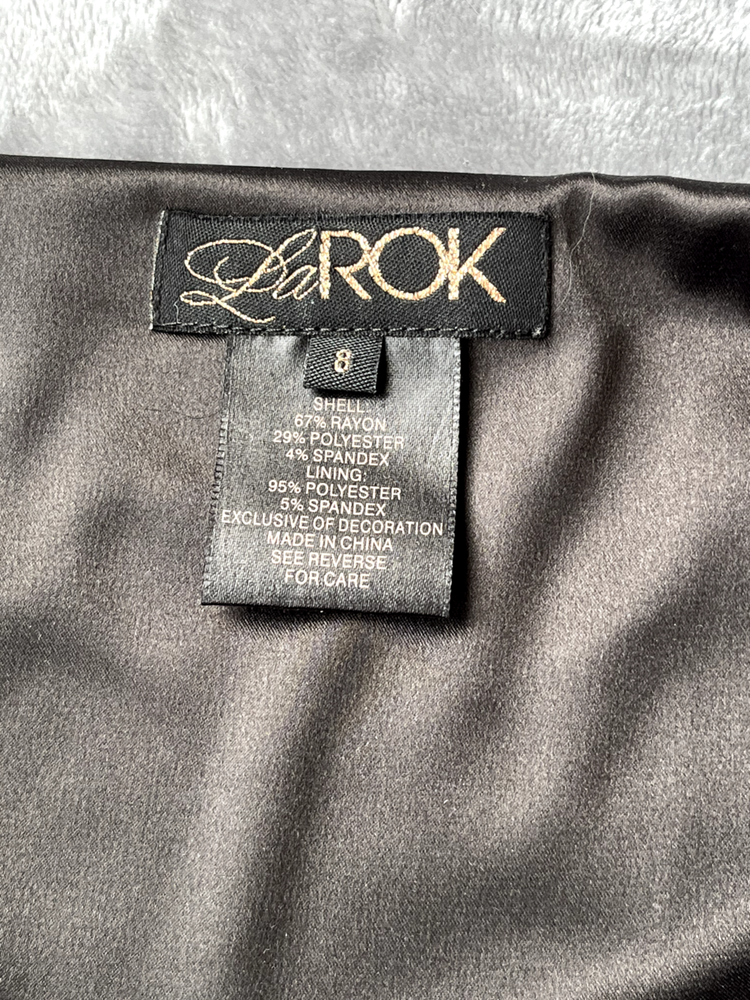 LaROK Women's Black Mini Skirt with Studs Skirt is lined with zipper on the left side Size: 8 Color: Black Good Used Condition Waist: 32" Length: 13.5" 67% Rayon, 29% Polyester, 4% Spandex Lining: 95% Polyester 5% Spandex Hand Wash Cold Comes from smoke free home