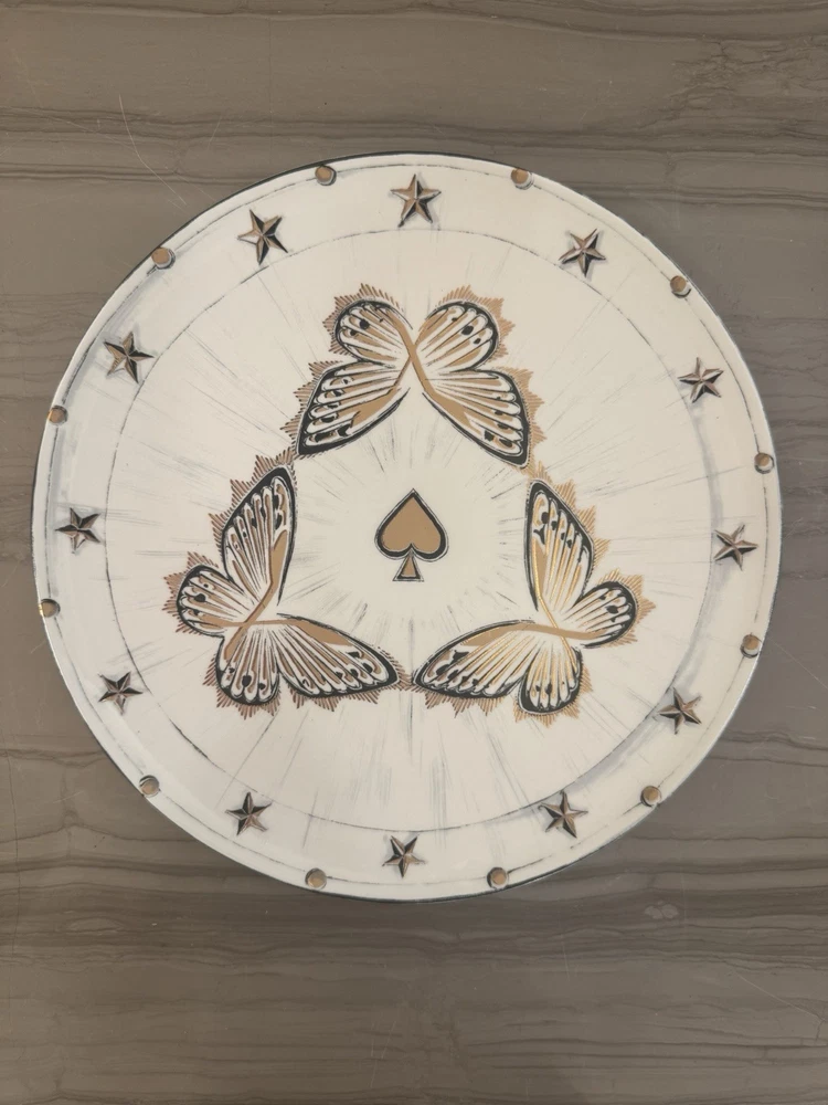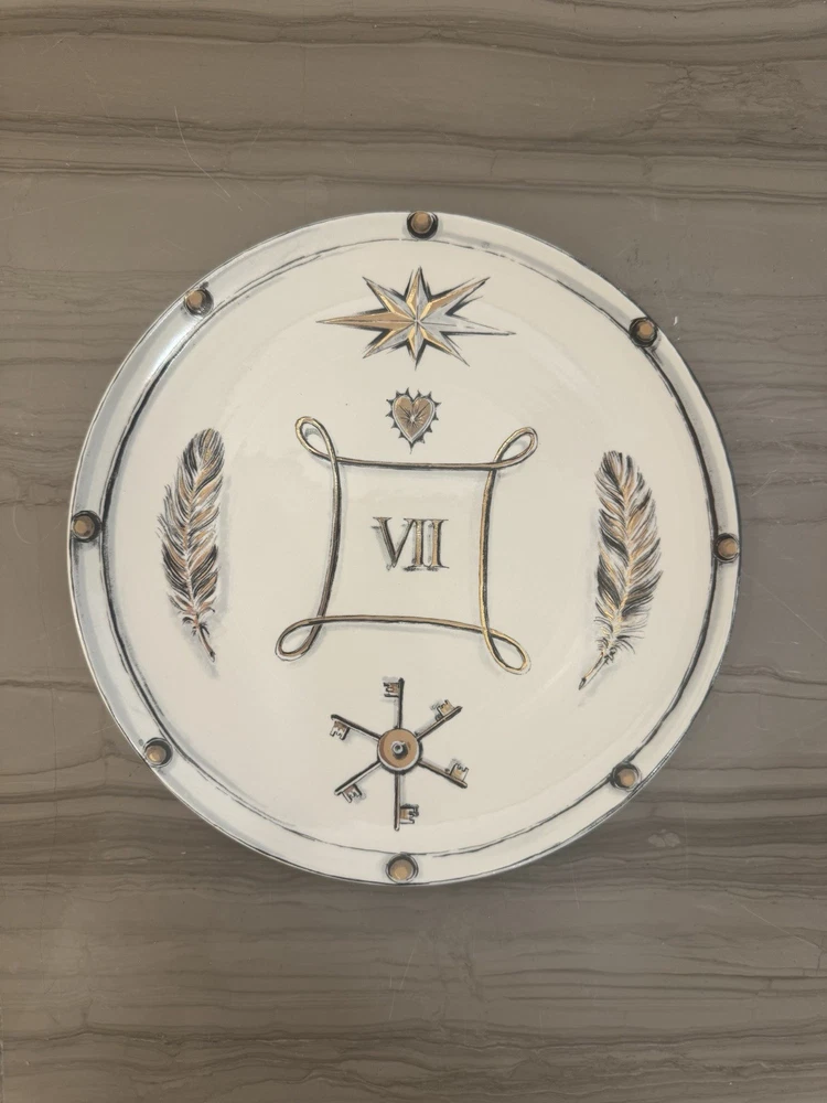 “In collaboration with Labortorio Paravicini, this Tenet Plate Set Represents 5 of FoundRae’s Tenets: Vivacity, True Love, Resilience, Internal Compass, and Reverie” The Laboratorio Paravinci Milano, Chapter 2, Tenet Dessert Plate set of 5 is a stunning addition to any dining collection. With an astrology-inspired pattern and a glossy finish, these ceramic and ceramic bisque plates feature a round shape and vibrant multicolor design. The foundrae brand ensures quality and originality, making these dessert plates a unique and stylish choice for your table setting.
