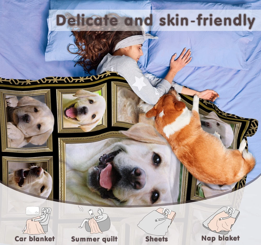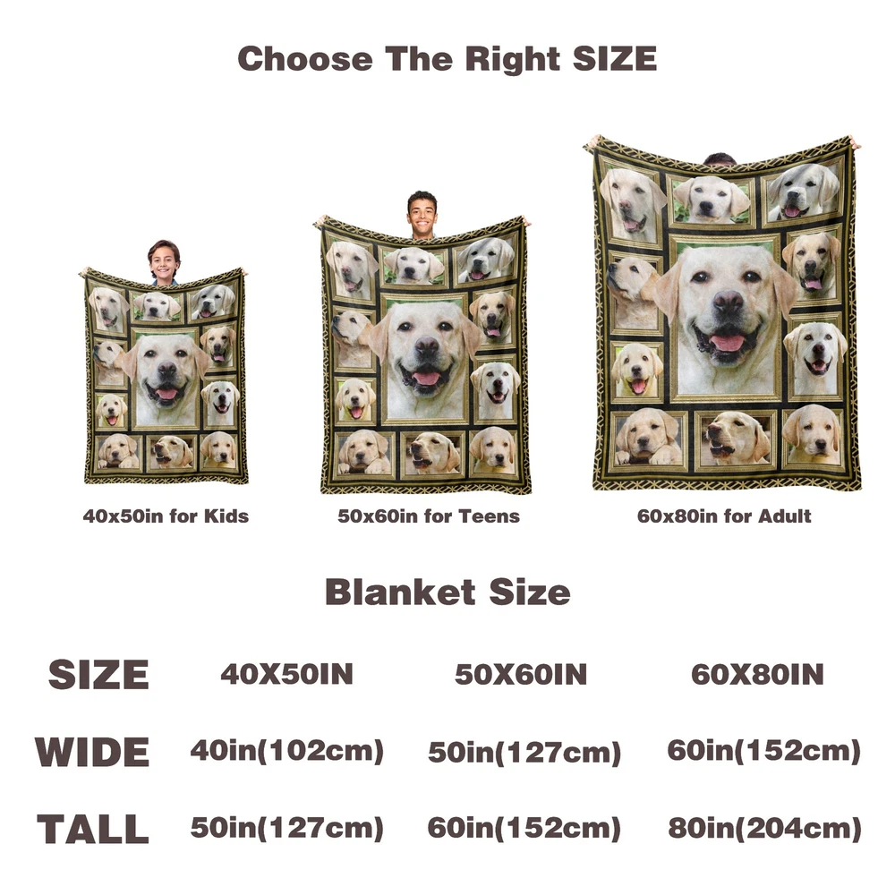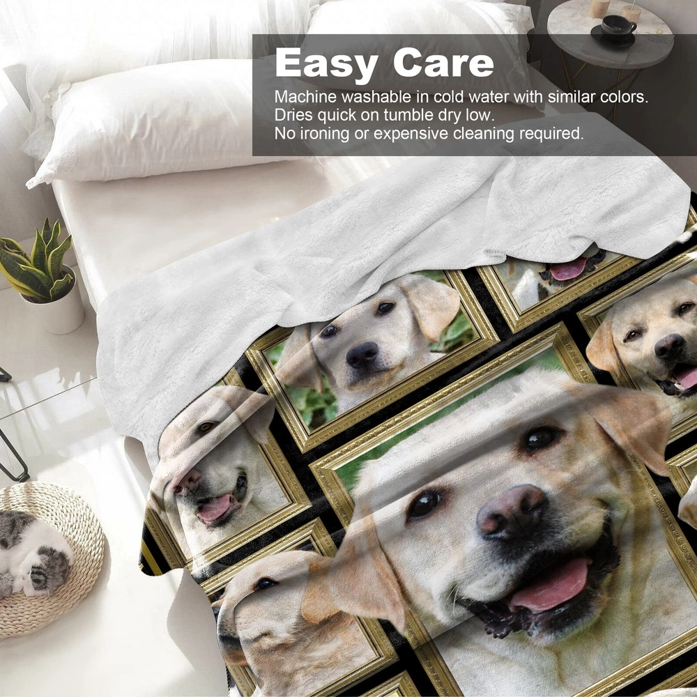 Soft & Cozy Blanket: the blanket is made of premium polyester and breathable high-density flannel material, making blankets fine, smooth, and super soft to the touch. Not easy to shed the villus and keep warm but not stifling hot, so that you can use this blanket in all seasons. Perfect Labrador Retriever Blanket: Labrador Retriever gifts for kids, women, men, family, and friends. The Labrador Retriever blanket seems like a mother's hug, keeping you warm and cozy. It will bring your friends, son, daughter, families, and Labrador Retriever lovers a cheerful mood and is a perfect Labrador Retriever room decoration for women and men. Labrador Retriever Gifts: Show her/him how much you love her/him with a delicate gift, and don't settle for an average gift. Imagine when her/he opens this Labrador Retriever blanket and realizes it's the perfect gift for her/him from you! Labrador Retriever blankets are exquisitely printed and touch soft and are the ideal gift for birthdays, Valentine's Day, Mother's Day, Thanksgiving, Easter, Christmas, and other holidays. Versatile Blanket: This warm blanket is perfect for reading, watching TV, relaxing on the couch, or home decorating. It can be used all year round. It is perfect as a home blanket, snuggle blanket, nap blanket, office chair lap blanket, sofa blanket, bed throw, outdoor travel blanket, baby blanket, children blanket, etc. Excellent After-sales Service: Machine washable and tumble dry at low temperature. Maintains its color and does not shed. If there is any problem with our blankets, you can contact us at any time. We promise that we will provide a 30-day return and exchange service as well as lifetime free customer service. We believe you will fall in love with the blanket and hope to add warmth to your life.