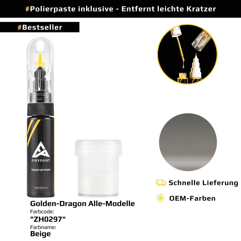 FixyPaint - Professionelle Autokratzer-Reparatursets 🚗 Kratzer am Auto schnell & einfach reparieren! Europäische Qualität • Exakte Farbanpassung • Über 25.000 Fahrern vertrauen Europäische Präzision Qualitätszertifiziert 60-Tage-Garantie 🌍 Hergestellt in Europa 🔍 Qualitätszertifiziert 🌱 Umweltfreundliche Formel Warum FixyPaint wählen? 💰 Günstige Reparatur Professionelle Ergebnisse zu niedrigen Kosten 🎯 Exakte Farbanpassung Über 100.000 Farbcodes für alle Autos ⏱️ Schnelle 5-Minuten-Reparatur Kein Termin nötig 👍 Für jeden einfach Einfach zu bedienen, keine Erfahrung erforderlich Wählen Sie Ihr Set 🎨 Nur Farbe Für schnelle Ausbesserungen: 20 ml angepasste Farbe Pinsel zum Auftragen Nadel zum Auftragen Optimal für: Schnelle Reparaturen ⭐ Farbe + Polierpaste Für ein poliertes Aussehen: Alle „Nur Farbe“-Artikel 15 ml Glanzpolitur Optimal für: Glatte, polierte Ergebnisse 💎 Komplettset Für eine vollständige Reparatur: Alle „Farbe + Polierpaste“-Artikel Mikrofasertuch Schutzhandschuh Optimal für: Eine vollständige, unkomplizierte Reparatur 🌍 Europäische Qualität 🛡️ 60-Tage-Geld-zurück 📦 Versand aus Europa 🌱 Umweltzertifiziert 3 einfache Schritte 1. Farbcode finden Überprüfen Sie den Türrahmen, Kofferraum oder die Motorhaube Ihres Autos. 2. Kratzer reinigen Verwenden Sie ein mildes Reinigungsmittel und trocknen Sie es gut. 3. Farbe auftragen Verwenden Sie den Pinsel oder die Nadel, lassen Sie es trocknen, dann polieren. Häufig gestellte Fragen ❓ Passt es zu meinem Auto? Ja! Geben Sie Ihren Farbcode für eine perfekte Übereinstimmung an. ❓ Hält es bei Wetter? Ja, es ist für alle Klimazonen und Autowäschen getestet. ❓ Ist es schwer zu benutzen? Nein, es ist einfach mit klaren Anweisungen. 60-Tage-Garantie Nicht zufrieden? Volle Rückerstattung innerhalb von 60 Tagen! eBay-Käuferschutz • Versand aus Europa © FixyPaint. Alle Bilder sind urheberrechtlich geschützt. Nutzung ohne Genehmigung ist illegal. Wichtig: Stellen Sie sicher, dass Sie den richtigen Farbcode bestellen. Frische Farbe kann mit der Zeit verschmelzen und durch Wetterbedingungen beeinflusst werden.