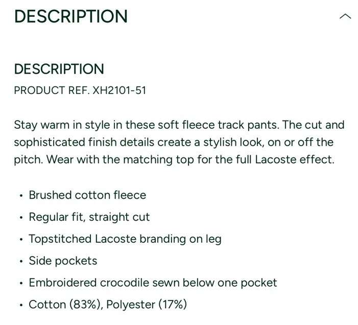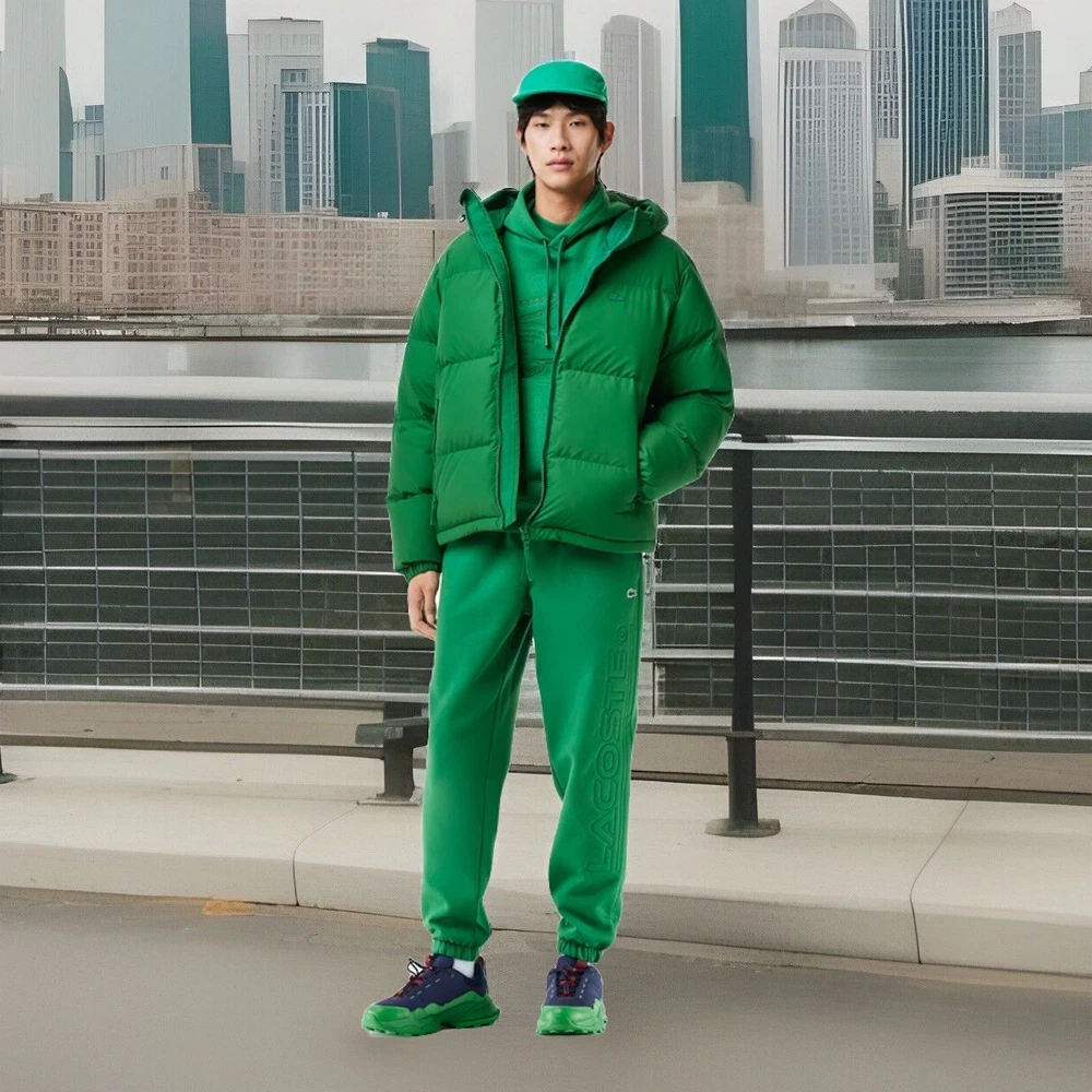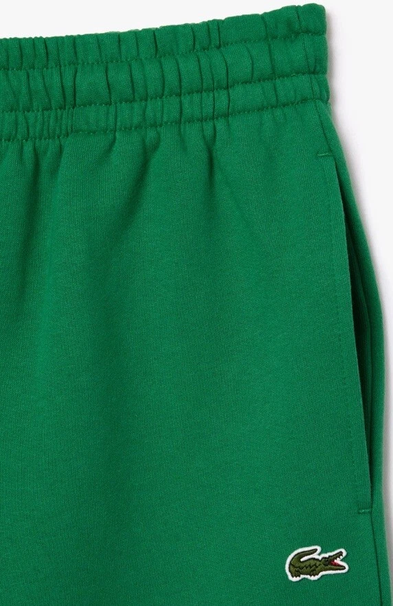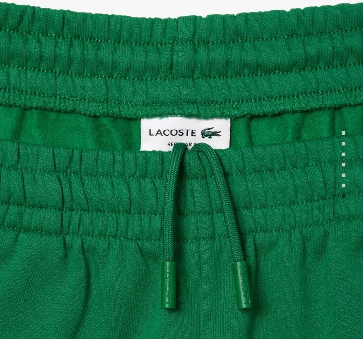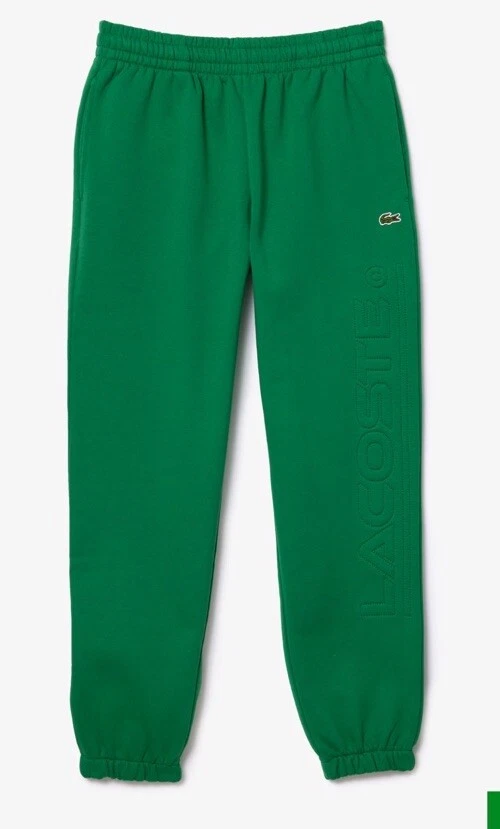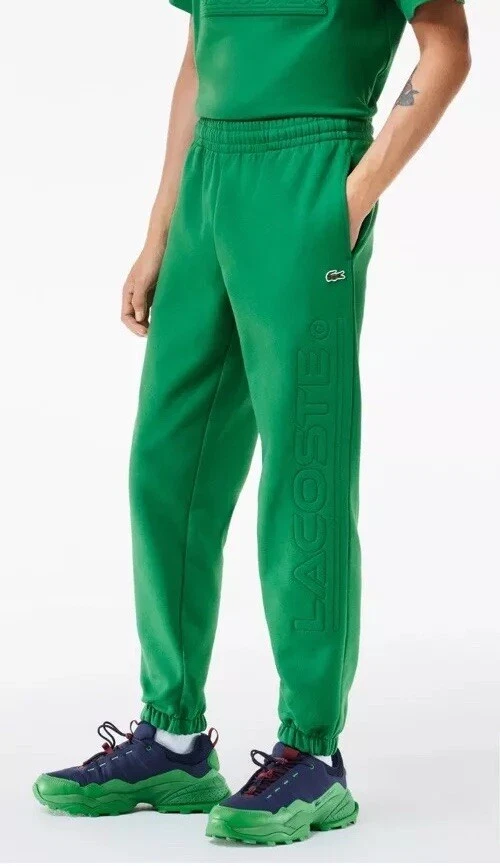 Elevate your style with these Lacoste men's sweatpants, featuring a rocket green color and embroidered logo detail. Made from a comfortable blend of polyester and cotton, these pants are perfect for any occasion, whether it be a casual day out or a formal event. The drawstring closure and adjustable waist ensure a secure fit, while the slash pockets provide ample storage space. These sweatpants are part of the Lacoste Sweatpants product line and are machine washable for easy care. The straight leg style and flat front design make them a versatile addition to any wardrobe, whether you're a hipster, hippie, or preppy dresser.