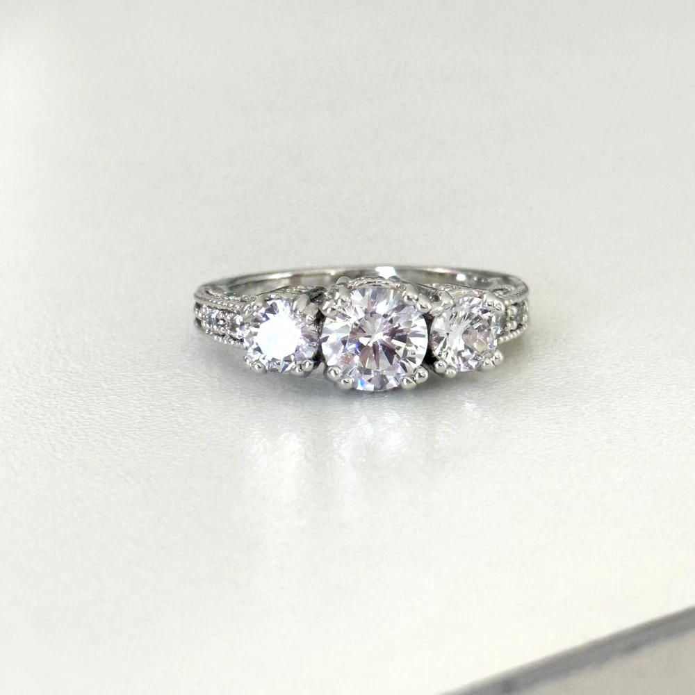 Ladies Clear CZ Three Stone Sparkly Engagement Style Statement Band Ring Size: 8 Stone size: 7.5mm Excellent condition. - Fast shipping, I ship the same or next business day! I also combine shipping. - Thank you so much for shopping with me and please check out my other jewelry listings, I post new pieces daily!