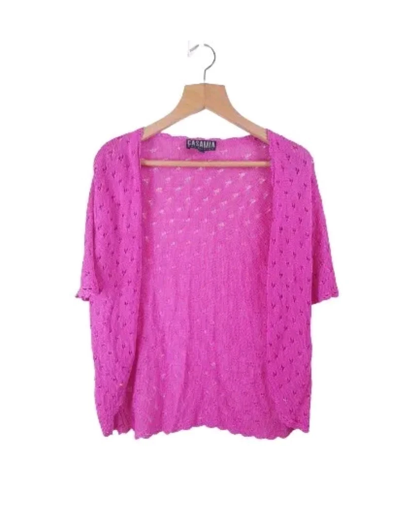 Elevate your wardrobe with this stunning ladies' pink top from Casamia Exclusive. The short sleeve blouse features an open neckline and pullover closure, making it the perfect addition to your travel, wedding, party, cocktail, casual, formal, or business attire. Crafted from high-quality viscose jersey fabric, this limited edition top is machine washable for easy care. The regular fit blouse comes in size M/L and is designed to flatter any body type. The lightweight and comfortable material make it perfect for autumn, winter, and spring. The classic holiday theme and vibrant pink colour add a touch of elegance to your wardrobe. Made in the United Kingdom, this women's top is a must-have for any fashion-forward individual. In Good Used Condition Measurements In inch : Please see photos above for all measurements I will ship this item out via Evri 2-3 Day Mail with a tracking number for confirmation I ship items out EVERY DAY so EXPECT a QUICK delivery! Please feel free to ask any questions you may have I answer most questions instantly! PLEASE NOTE THAT ALL OUR ITEMS ARE %100 AUTHENTIC Please Note that all our items are from smoke and pet free Environment. #30/06/22# PLEASE VISIT MY STORE AND CHECK MY OTHER ITEMS THANK YOU
