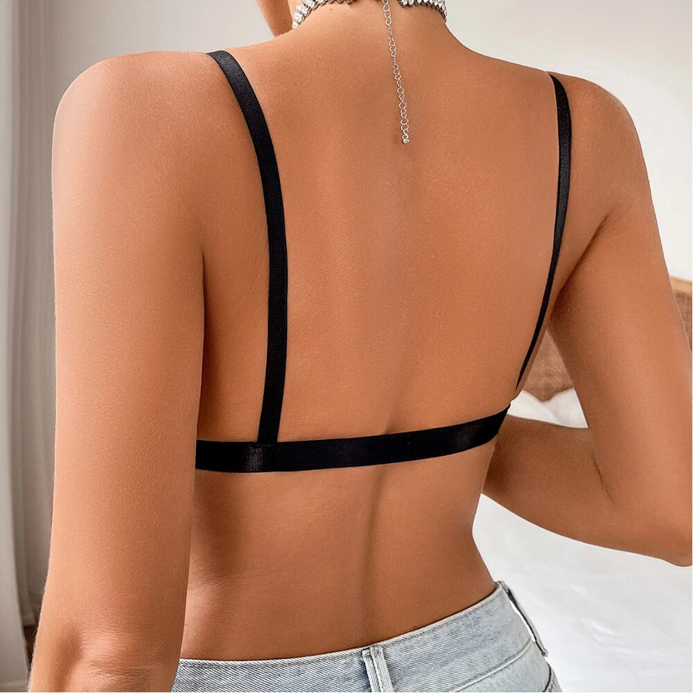 Sexy Backless Bras Seamless Wire Free Bralettes Front Closure Triangle Cup Features: Sexy half-cup bra with a stylish deep V-neck design that makes your breasts look great! Wear it with your favorite necklines and dresses, ensuring you'll feel flatteringly supportive no matter the occasion. Whether you're working out, shopping, or on a date, our triangle bralette give you the freedom of movement and flexibility you need. Style:Casual,Sexy Size:XS\S\M\L Material: Nylon,Spandex Color:Black Season:Spring/Summer/Autumu/Winter Package Includes:1 x Bra Notes 1.Manual measuring.please allow 1-3cm error,thank you 2.Due to the difference between dilferent monitors,the picture may notreflect the actual color of the item. We guarantee the style is the same as shown in the picture.