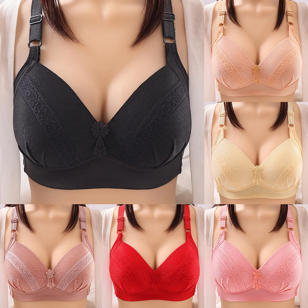 Sexy Deep V Brassiere Push Up Full Coverage Bra Large Size Wireless Bras Thin Features: Wireless and Comfortable: Our wireless lace bras are designed to provide ultimate comfort for women. The thin cup and adjustable feature ensure a perfect fit, allowing you to move freely without any discomfort. No Underwire, No Problem: Say goodbye to uncomfortable underwires with our soft daily bra. This bra offers gentle support and a natural shape without the need for underwire. Perfect for everyday wear, it allows you to feel comfortable and confident all day long. Anti-Sagging and High Support: Our sport bra is specially designed to provide high support and prevent sagging. Whether you're engaging in intense workouts or simply going about your daily activities, this bra offers the perfect balance of comfort and support. Push Up and Full-Coverage: Our push-up full-coverage bra is the perfect choice for those looking to enhance their curves. It provides a flattering lift and shape, while also offering full coverage and support. Feel confident and sexy in this stylish brassiere. Suitable for Everyday Wear: Our bras are designed to provide everyday comfort for women of all ages. Whether you're a middle-aged woman or an elderly lady, our bras offer the perfect combination of comfort and support. They also make a great gift for Mother's Day or any special occasion. Color: As picture shown Material: Polyester,Nylon Strap Type : Adjusted Straps Closure Type : Behind Closure Type: Women Bras Style: Fashion Fabric: Fabric has some stretch Size: Size Available: 42/95,44/100,46/105,48/110 Note: Due to the light and screen setting difference, the item's color may be slightly different from the pictures. Please allow slight dimension difference due to different manual measurement. Package Includes:1 x Women Bras