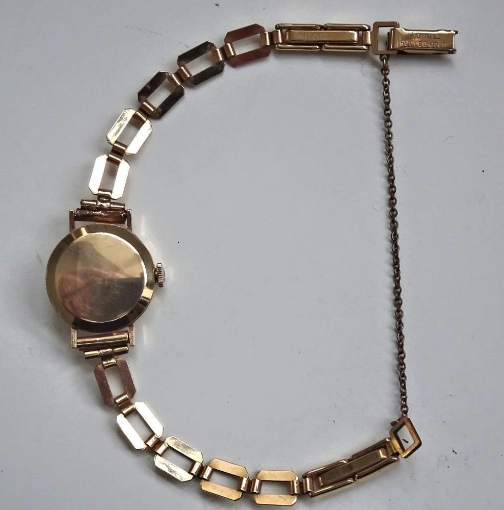 LADIES' VINTAGE TUDOR "ROYAL" (by ROLEX) 9ct GOLD 17 JEWELLED HAND WIND WATCH c1965 The watch is in superb condition. It is in full working order and keeps very good time. Hallmarked 9ct yellow gold case with a 1/10th 12ct rolled gold bracelet . The bracelet has a delicately engraved pattern on the front of the links. The crown is original with the "Rolex" coronet and the case also is Rolex branded. The hallmark is from the Edinburgh Assay Office with the date letter for 1965. The size of the watch case is 20mm in diameter excluding the crown. The watch will fit a maximum wrist size of 18cms . Champagne dial with blued hands and gold arabic numerals. Swiss made Tudor calibre 2512 hand wind movement with 17 jewels. This is a top quality vintage watch from the Swiss watchmaker TUDOR who are part of ROLEX . (3EBA4) Images sell! Get Supersized Images & Free Image Hosting Attention Sellers - Get Templates Image Hosting, Scheduling at Auctiva.com. Track Page Views With Auctiva's Counter