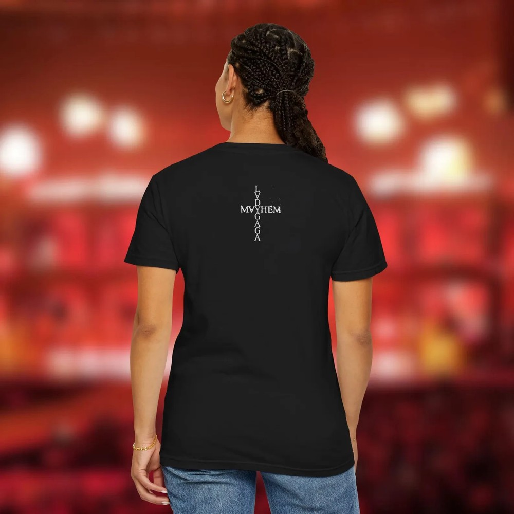 Exclusive Lady Gaga "Abracadabra Lady In Red" Mayhem Ball Tour Tee Bring the dark, avant-garde energy of the Mayhem Ball Tour to your everyday rotation. This custom-designed graphic tee merges industrial pop aesthetics with streetwear comfort. Printed on a premium, heavyweight Comfort Colors blank, it delivers that perfectly broken-in, vintage feel right out of the mail. Design Details: Front: A striking, 3D-rendered abstract spiked crimson graphic—channeling the fierce "Lady In Red" and "Abracadabra" era energy. Back: A stark, white typographic cross featuring stylized "LVDY GAGA" running vertically and "MVYHEM" running horizontally. Colorway: Deep raven black base with bold crimson red and stark white detailing. Why You’ll Love It: Premium Quality Blank: 6.1 oz, 100% ring-spun cotton. Comfort Colors is the gold standard for that ultra-soft, garment-dyed finish that only looks better with age. The Fit: Standard unisex relaxed fit. For an oversized, baggy Y2K streetwear look, we highly recommend sizing up one or two sizes. Unique Fan-Made Apparel: Skip the merch lines and stand out with an original design you won't see everyone else wearing at the stadium. Care Instructions: Machine wash cold, inside-out, with like colors to protect the high-quality prints. Tumble dry low or hang dry for longevity. Lady Gaga Merch, Mother Monster, Little Monsters, Mayhem Ball Tour 2025, Abracadabra Shirt, Lady In Red Tee, Concert Tee, Tour Shirt, Goth Graphic Tee, Industrial Streetwear, Y2K Style, Comfort Colors Heavyweight Tee, Edgy Pop Culture Apparel, Cross Graphic Shirt.