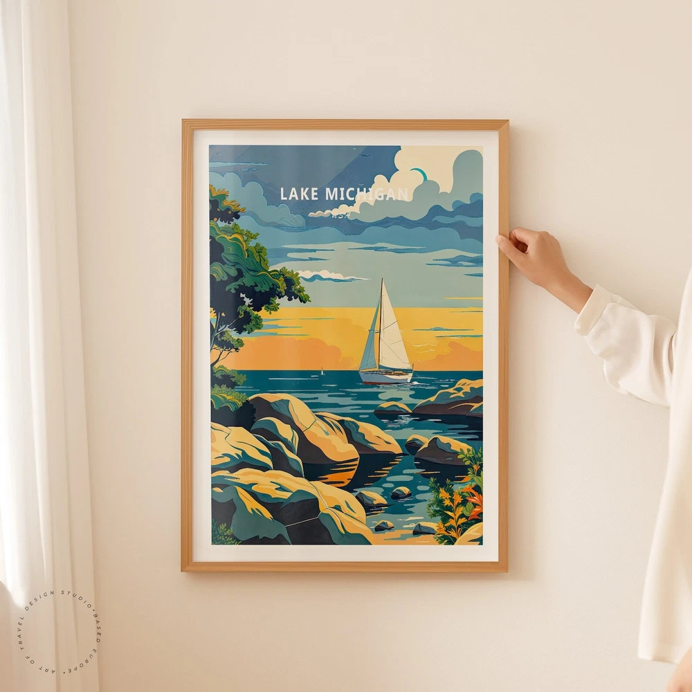 Lake Michigan Usa Sunset Poster Usa Wall Art Decor Lake Michigan Custom Travel Poster Usa Coast Print Personalised Gifts Material: Premium luster photo paper Print type: Inkjet printing One side printed + The finish provides the highest possible resolution and color saturation + Lasts up to 200 years in color and 400 years in black-and-white + Printed on high-quality resin-coated photo base paper medium + Posters can be hung with double-sided tape, tacks, or framed + Hand washing with a gentle cry cloth is recommended for extended durability I will hand select the best choice of paper for your chosen design to ensure top quality results for a beautiful, bright and luxurious print. All prints are sealed in cellophane slips for protection during transportation, and are shipped in a protective cardboard envelope.